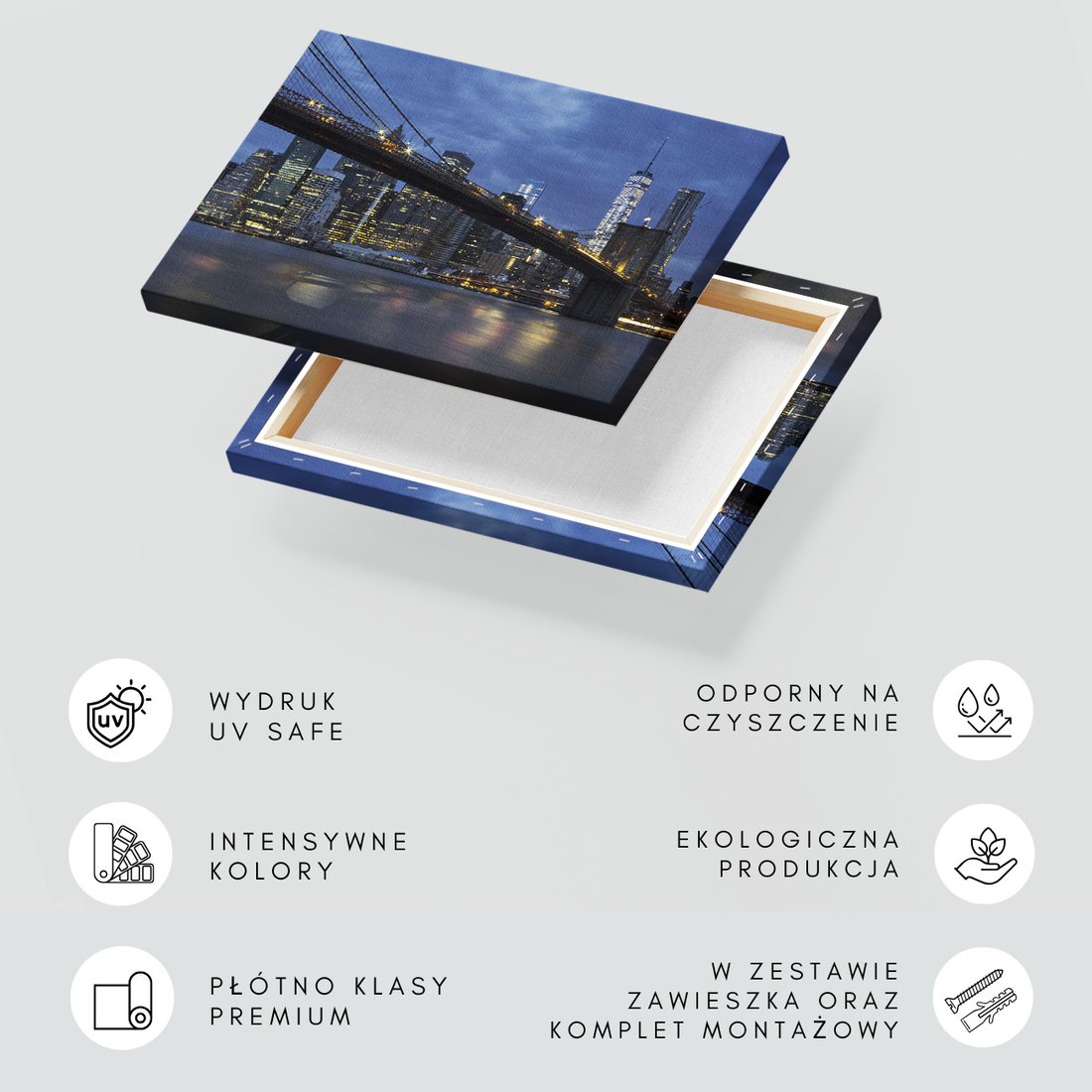 Obraz na płótnie z motywem most, miasto, noc to kwintesencja estetyki i trwałości. Dzięki łatwemu montażowi i uniwersalnemu wzornictwu, czyni go idealnym wyborem zarówno do codziennego użytku, jak i na wyrafinowany prezent.