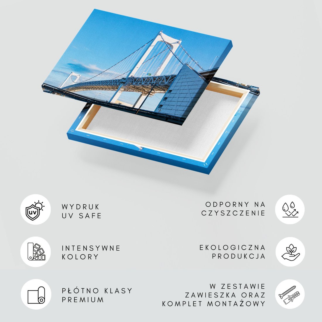 Obraz na płótnie z motywem most, niebo, miasto to kwintesencja estetyki i trwałości. Dzięki łatwemu montażowi i uniwersalnemu wzornictwu, czyni go idealnym wyborem zarówno do codziennego użytku, jak i na wyrafinowany prezent.