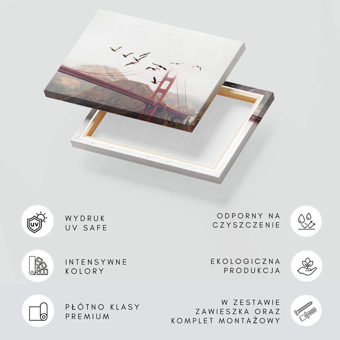 Obraz na płótnie z motywem Most, Ptaki, Góry to kwintesencja estetyki i trwałości. Dzięki łatwemu montażowi i uniwersalnemu wzornictwu, czyni go idealnym wyborem zarówno do codziennego użytku, jak i na wyrafinowany prezent.