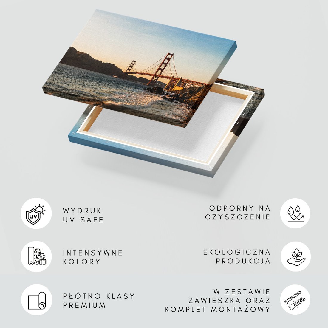 Obraz na płótnie z motywem most, woda, fale to kwintesencja estetyki i trwałości. Dzięki łatwemu montażowi i uniwersalnemu wzornictwu, czyni go idealnym wyborem zarówno do codziennego użytku, jak i na wyrafinowany prezent.