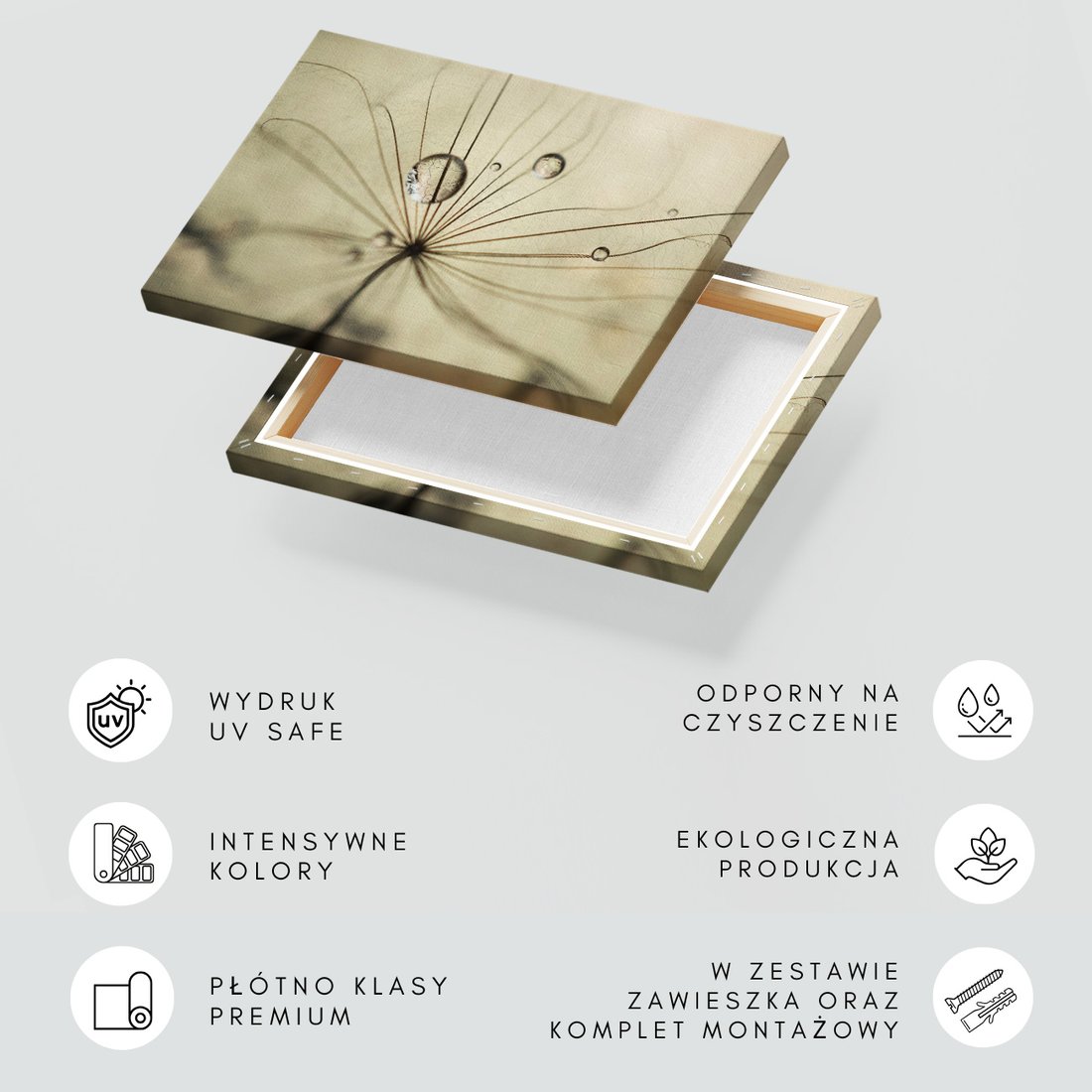 Obraz na płótnie z motywem nasiona, krople, natura to kwintesencja estetyki i trwałości. Dzięki łatwemu montażowi i uniwersalnemu wzornictwu, czyni go idealnym wyborem zarówno do codziennego użytku, jak i na wyrafinowany prezent.