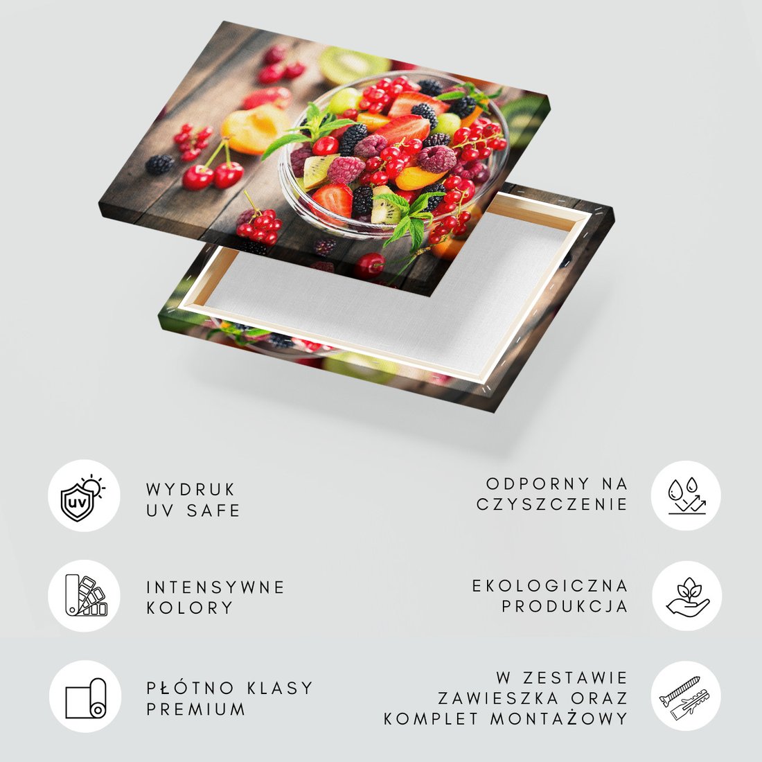 Obraz na płótnie z motywem owoce, deser, słodki to kwintesencja estetyki i trwałości. Dzięki łatwemu montażowi i uniwersalnemu wzornictwu, czyni go idealnym wyborem zarówno do codziennego użytku, jak i na wyrafinowany prezent.