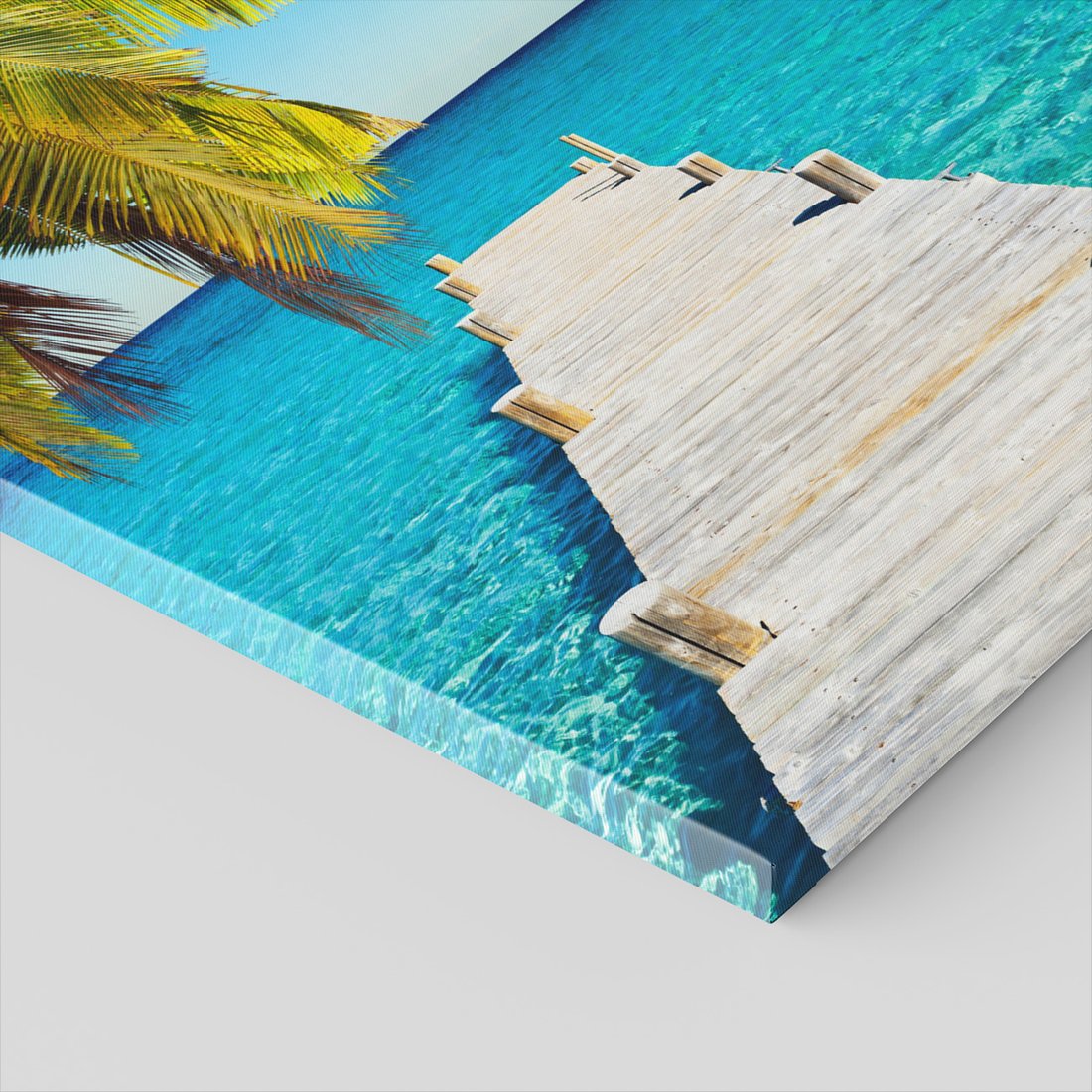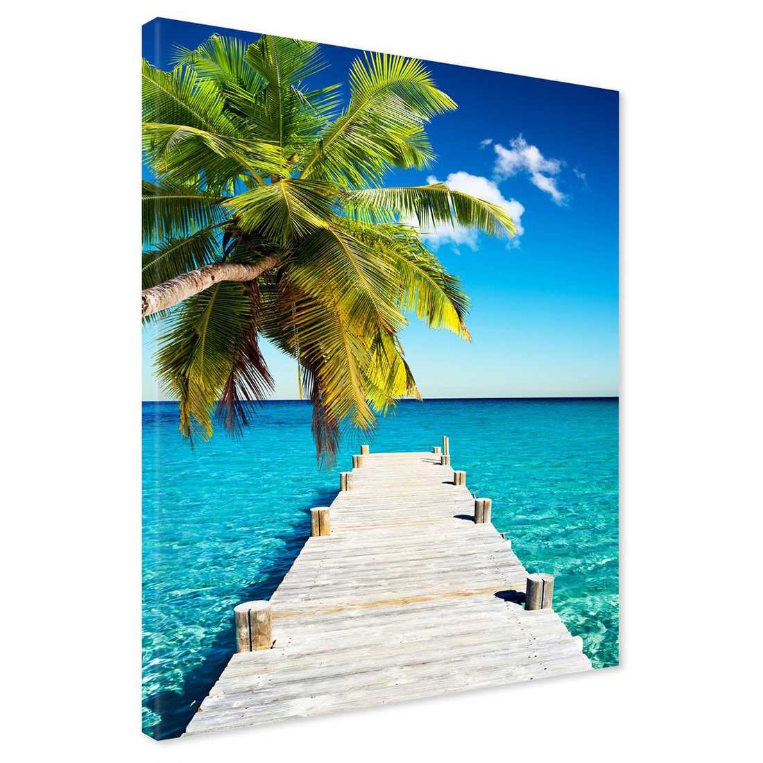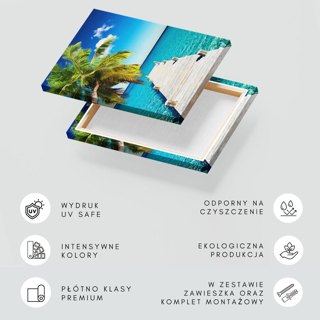 Obraz na płótnie z motywem palma, morze, pomost to kwintesencja estetyki i trwałości. Dzięki łatwemu montażowi i uniwersalnemu wzornictwu, czyni go idealnym wyborem zarówno do codziennego użytku, jak i na wyrafinowany prezent.