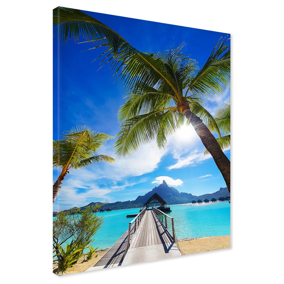 Obraz na płótnie z motywem palmy, plaża, woda to kwintesencja estetyki i trwałości. Dzięki łatwemu montażowi i uniwersalnemu wzornictwu, czyni go idealnym wyborem zarówno do codziennego użytku, jak i na wyrafinowany prezent.