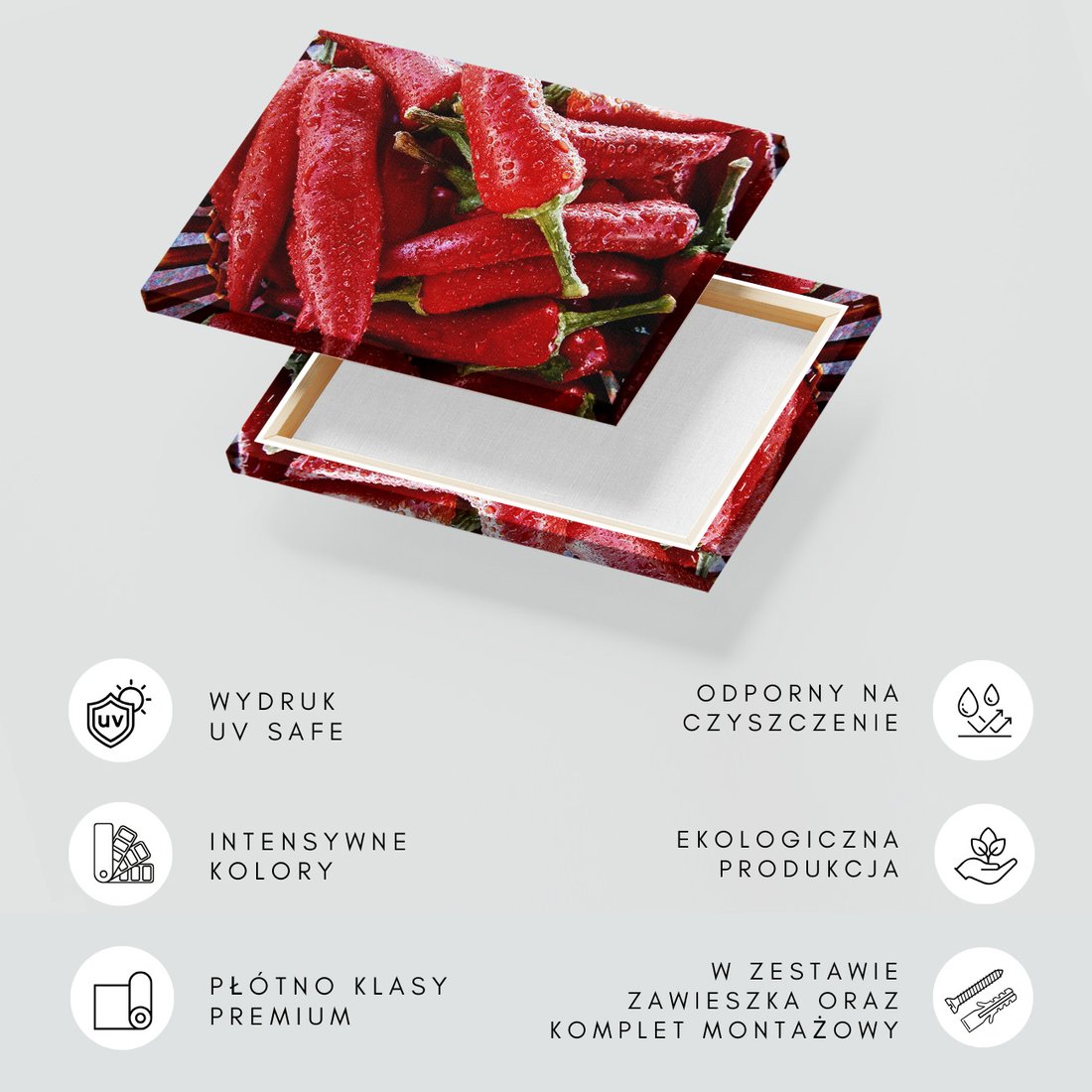 Obraz na płótnie z motywem papryka, czerwona, warzywa to kwintesencja estetyki i trwałości. Dzięki łatwemu montażowi i uniwersalnemu wzornictwu, czyni go idealnym wyborem zarówno do codziennego użytku, jak i na wyrafinowany prezent.