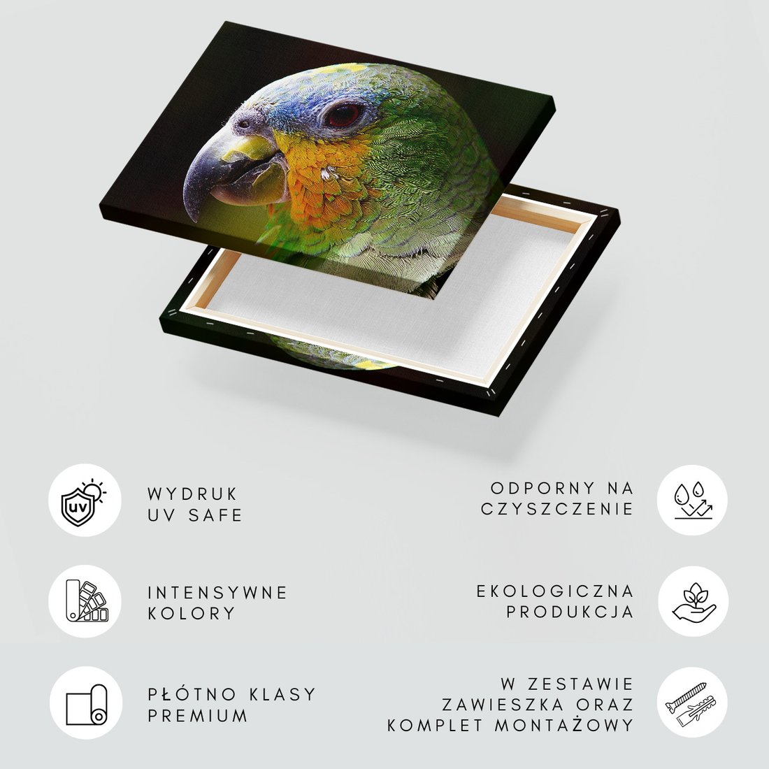 Obraz na płótnie z motywem papuga, ptak, tropikalny to kwintesencja estetyki i trwałości. Dzięki łatwemu montażowi i uniwersalnemu wzornictwu, czyni go idealnym wyborem zarówno do codziennego użytku, jak i na wyrafinowany prezent.