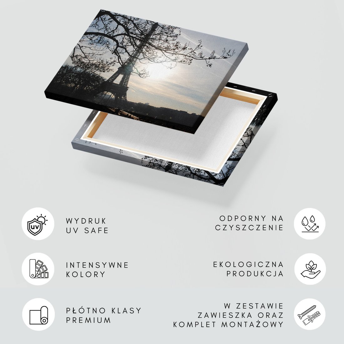 Obraz na płótnie z motywem Paryż, wieża Eiffla, miasto to kwintesencja estetyki i trwałości. Dzięki łatwemu montażowi i uniwersalnemu wzornictwu, czyni go idealnym wyborem zarówno do codziennego użytku, jak i na wyrafinowany prezent.
