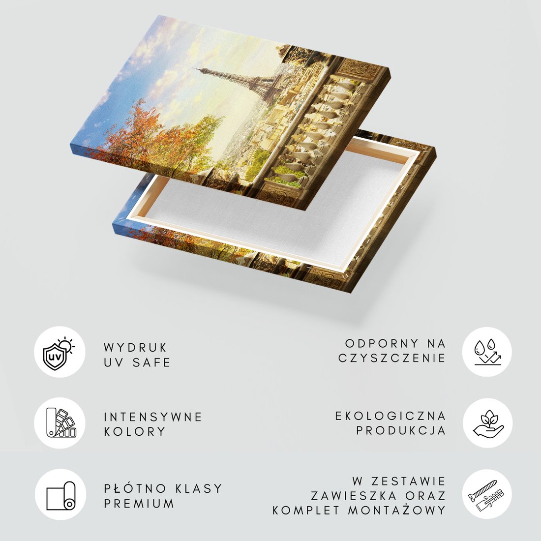 Obraz na płótnie z motywem Paryż, wieża Eiffla, miasto to kwintesencja estetyki i trwałości. Dzięki łatwemu montażowi i uniwersalnemu wzornictwu, czyni go idealnym wyborem zarówno do codziennego użytku, jak i na wyrafinowany prezent.