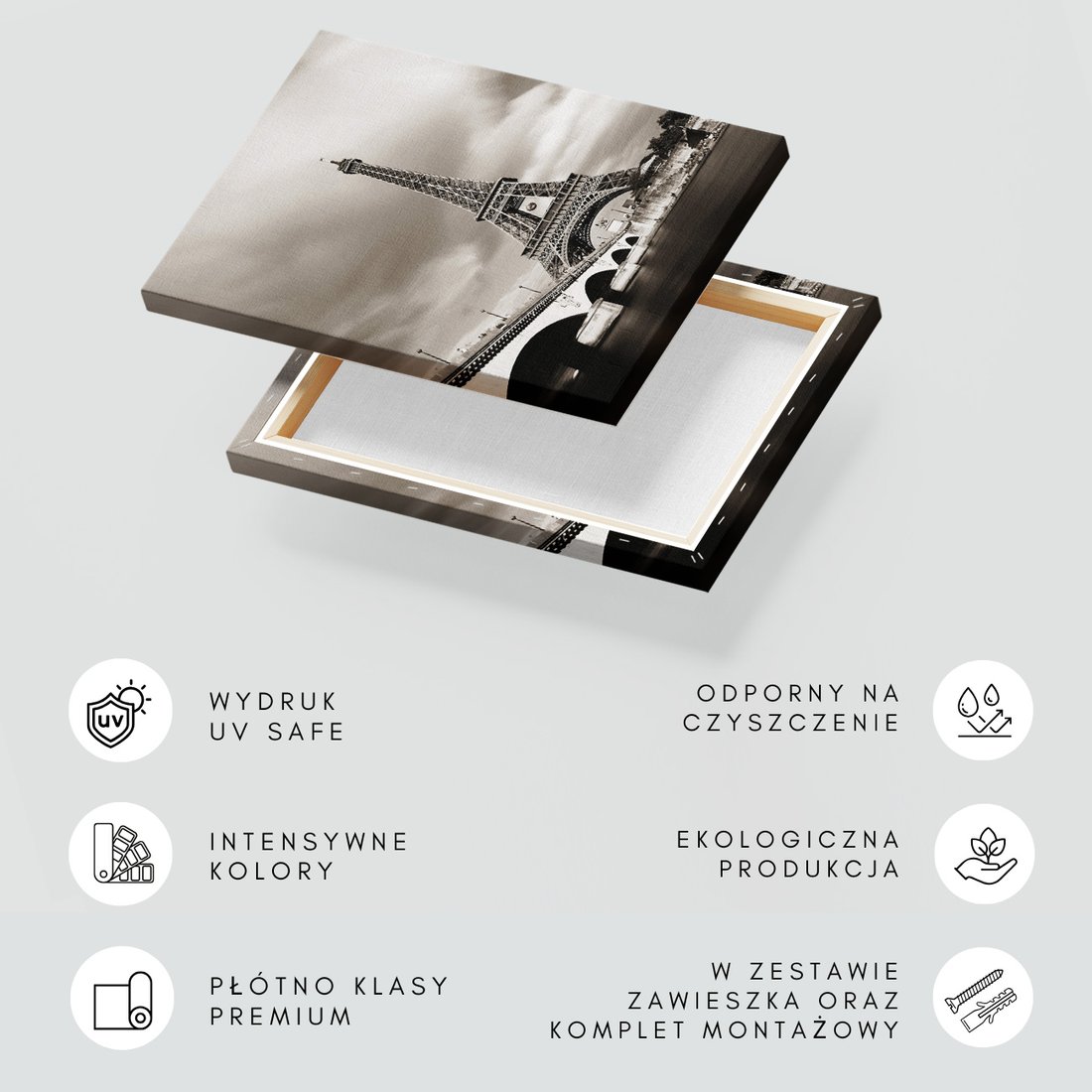 Obraz na płótnie z motywem Paryż, Wieża Eiffla, most to kwintesencja estetyki i trwałości. Dzięki łatwemu montażowi i uniwersalnemu wzornictwu, czyni go idealnym wyborem zarówno do codziennego użytku, jak i na wyrafinowany prezent.