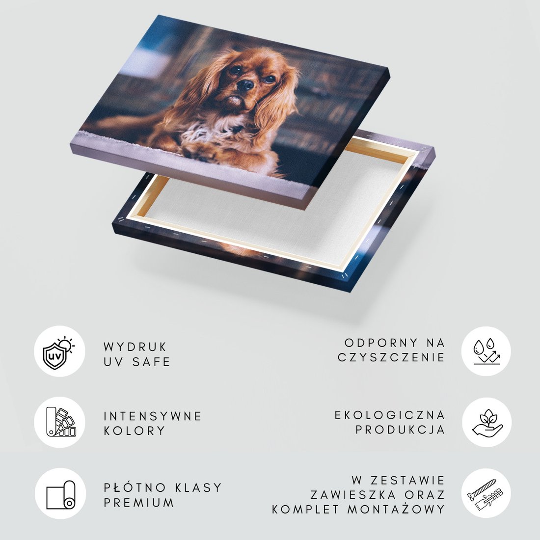 Obraz na płótnie z motywem pies, portret, zwierzę to kwintesencja estetyki i trwałości. Dzięki łatwemu montażowi i uniwersalnemu wzornictwu, czyni go idealnym wyborem zarówno do codziennego użytku, jak i na wyrafinowany prezent.
