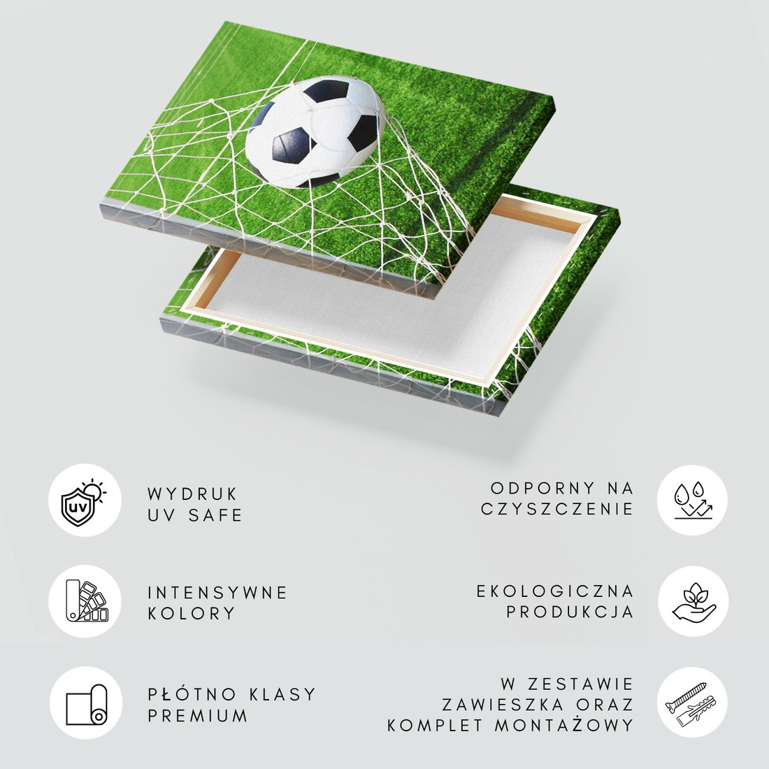 Obraz na płótnie z motywem piłka nożna, bramka, siatka to kwintesencja estetyki i trwałości. Dzięki łatwemu montażowi i uniwersalnemu wzornictwu, czyni go idealnym wyborem zarówno do codziennego użytku, jak i na wyrafinowany prezent.