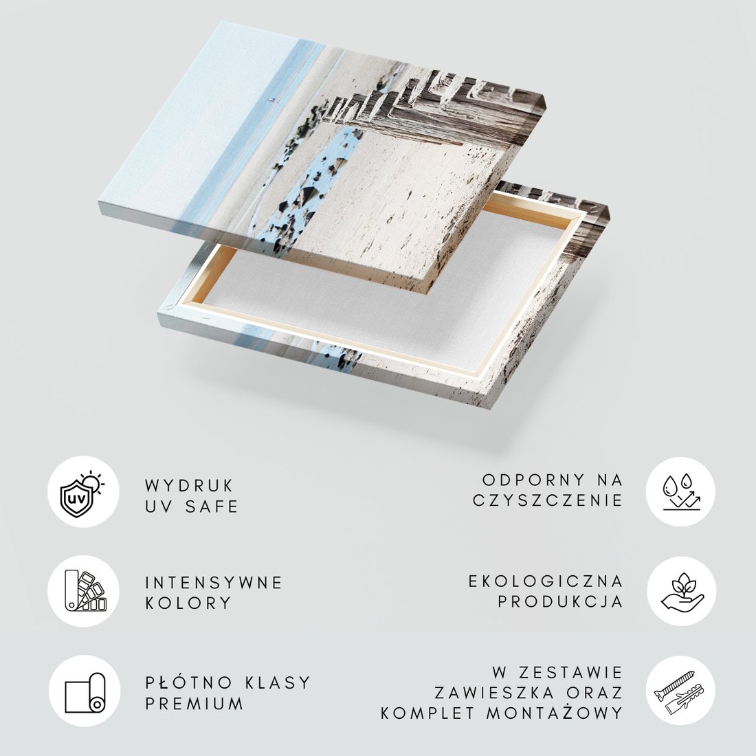 Obraz na płótnie z motywem plaża, morze, drewno to kwintesencja estetyki i trwałości. Dzięki łatwemu montażowi i uniwersalnemu wzornictwu, czyni go idealnym wyborem zarówno do codziennego użytku, jak i na wyrafinowany prezent.