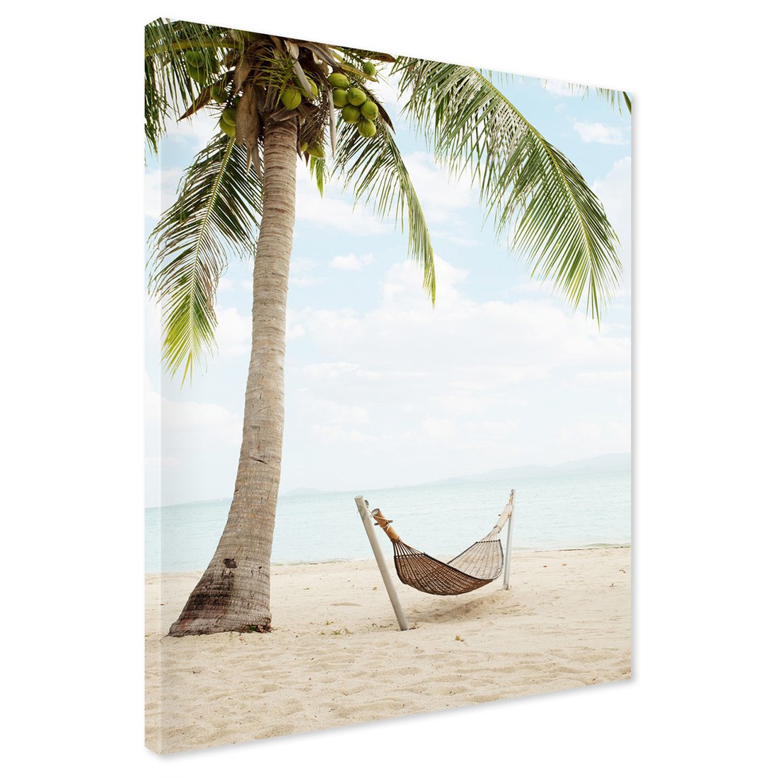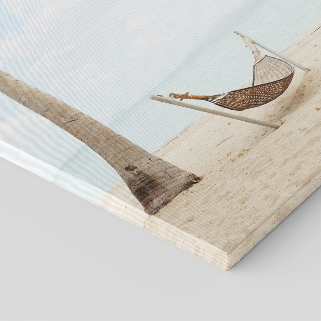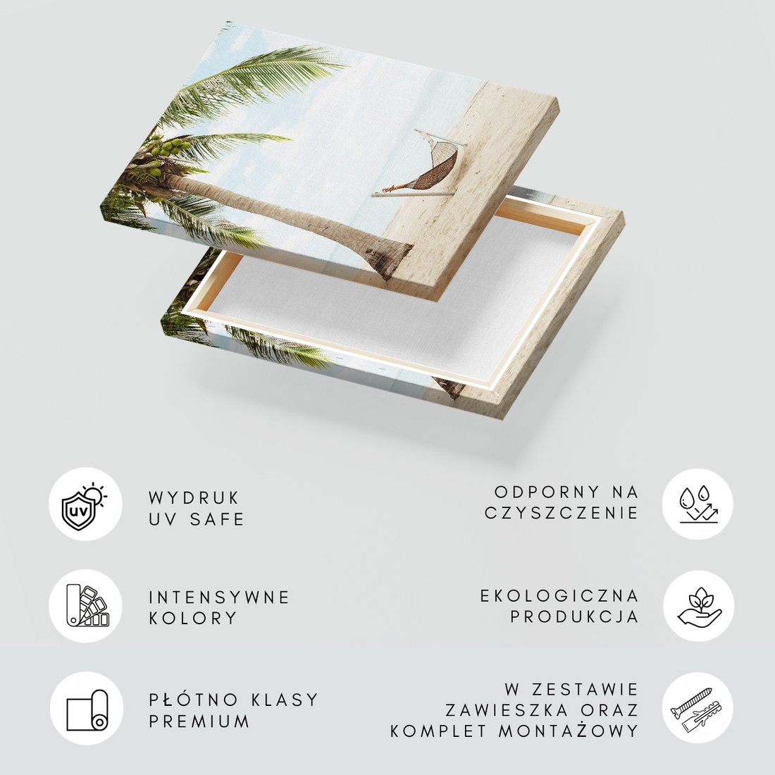 Obraz na płótnie z motywem plaża, palma, hamak to kwintesencja estetyki i trwałości. Dzięki łatwemu montażowi i uniwersalnemu wzornictwu, czyni go idealnym wyborem zarówno do codziennego użytku, jak i na wyrafinowany prezent.
