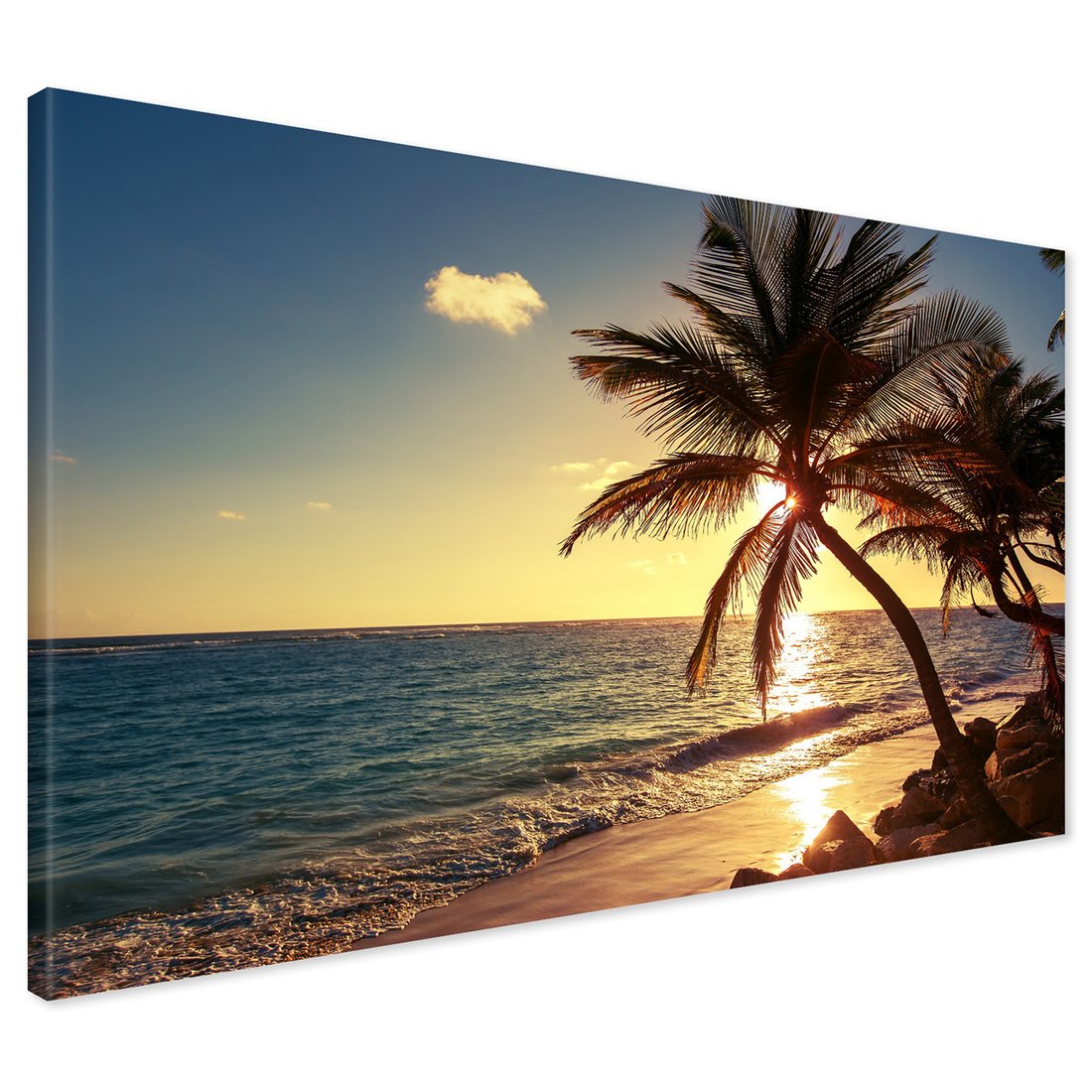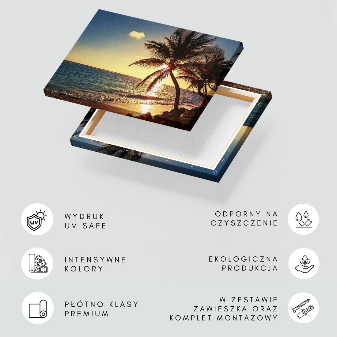 Obraz na płótnie z motywem plaża, palmy, morze to kwintesencja estetyki i trwałości. Dzięki łatwemu montażowi i uniwersalnemu wzornictwu, czyni go idealnym wyborem zarówno do codziennego użytku, jak i na wyrafinowany prezent.