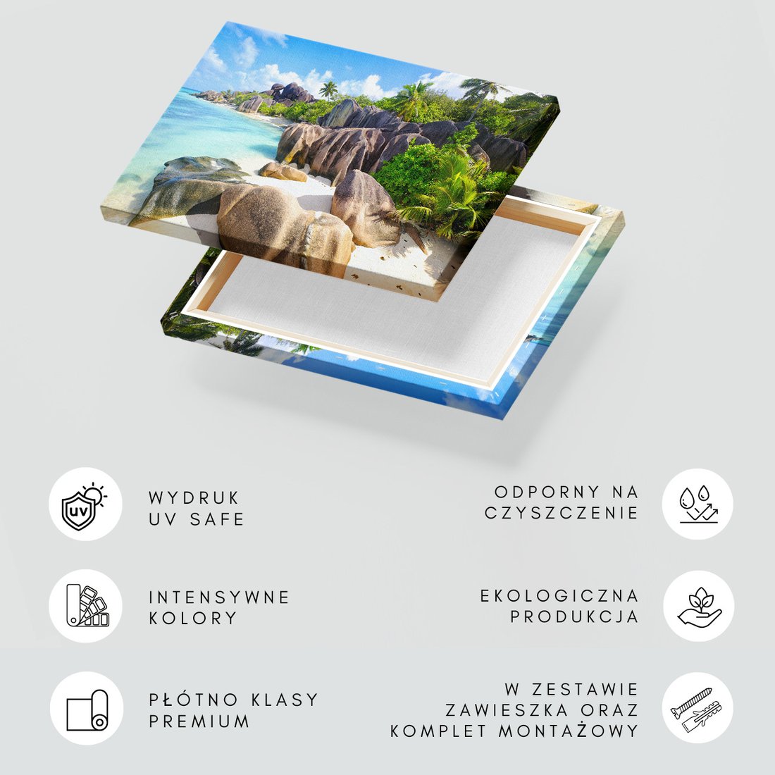 Obraz na płótnie z motywem plaża, skały, morze to kwintesencja estetyki i trwałości. Dzięki łatwemu montażowi i uniwersalnemu wzornictwu, czyni go idealnym wyborem zarówno do codziennego użytku, jak i na wyrafinowany prezent.