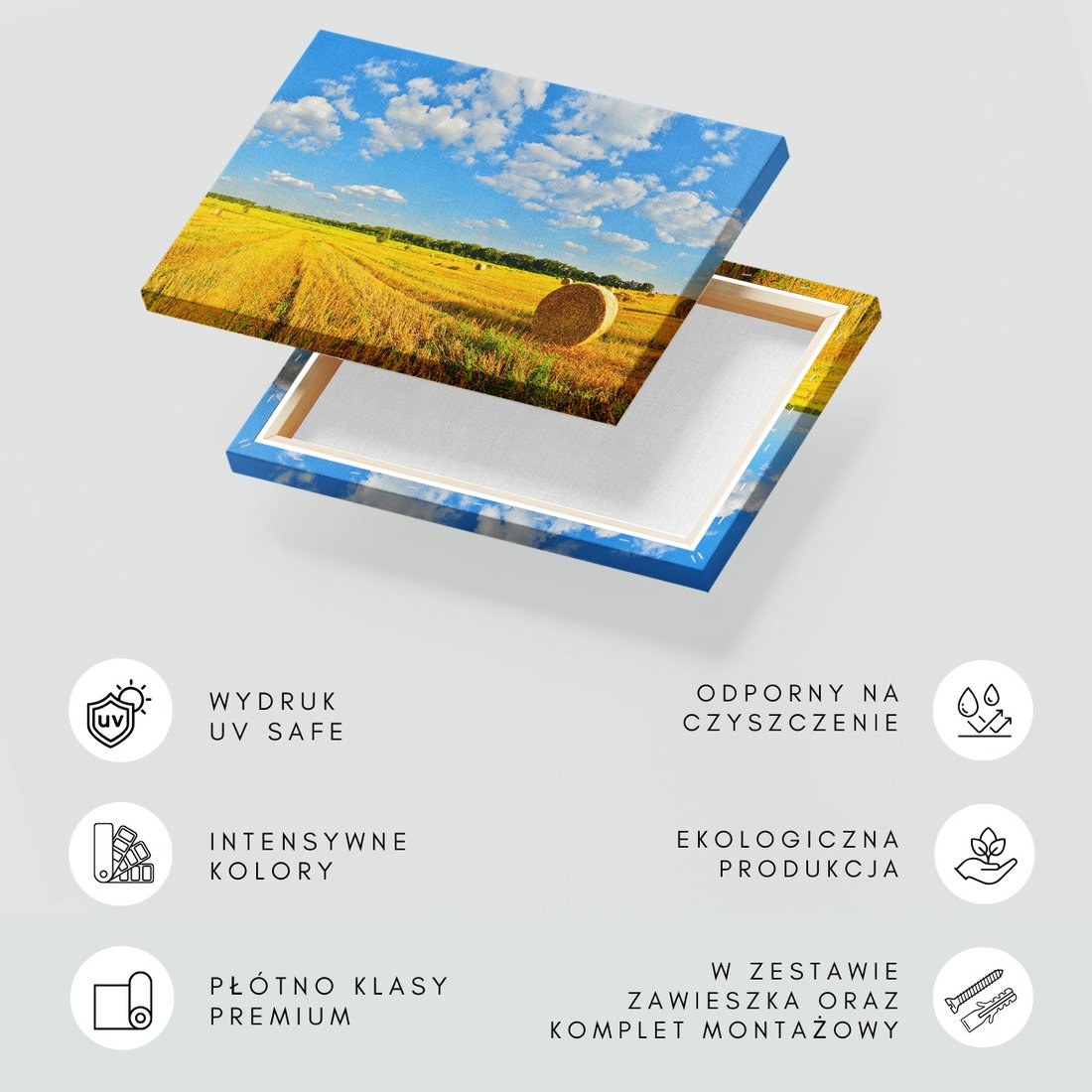 Obraz na płótnie z motywem pola, niebo, krajobraz to kwintesencja estetyki i trwałości. Dzięki łatwemu montażowi i uniwersalnemu wzornictwu, czyni go idealnym wyborem zarówno do codziennego użytku, jak i na wyrafinowany prezent.