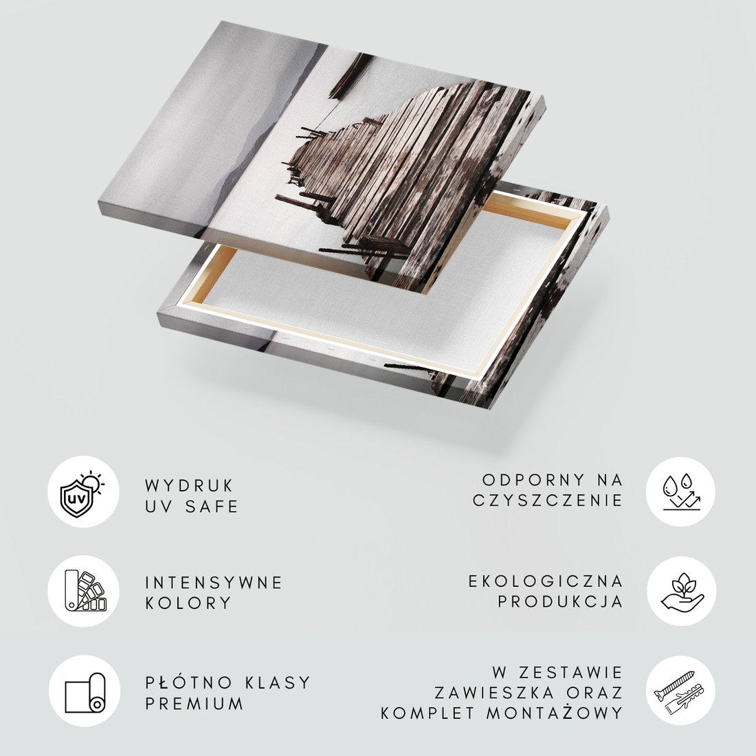 Obraz na płótnie z motywem pomost, woda, łódka to kwintesencja estetyki i trwałości. Dzięki łatwemu montażowi i uniwersalnemu wzornictwu, czyni go idealnym wyborem zarówno do codziennego użytku, jak i na wyrafinowany prezent.