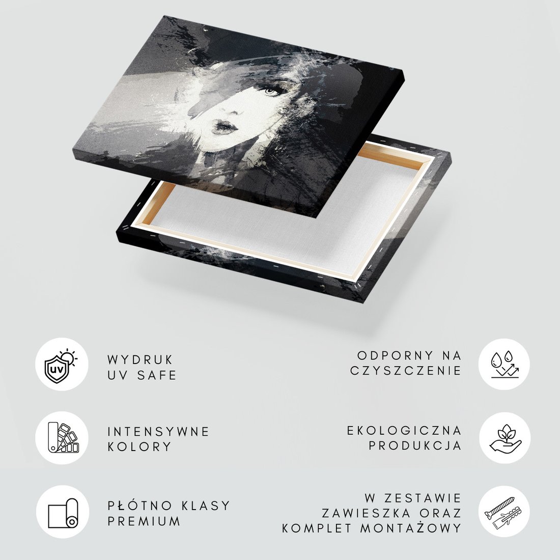 Obraz na płótnie z motywem portret, kobieta, abstrakcja to kwintesencja estetyki i trwałości. Dzięki łatwemu montażowi i uniwersalnemu wzornictwu, czyni go idealnym wyborem zarówno do codziennego użytku, jak i na wyrafinowany prezent.