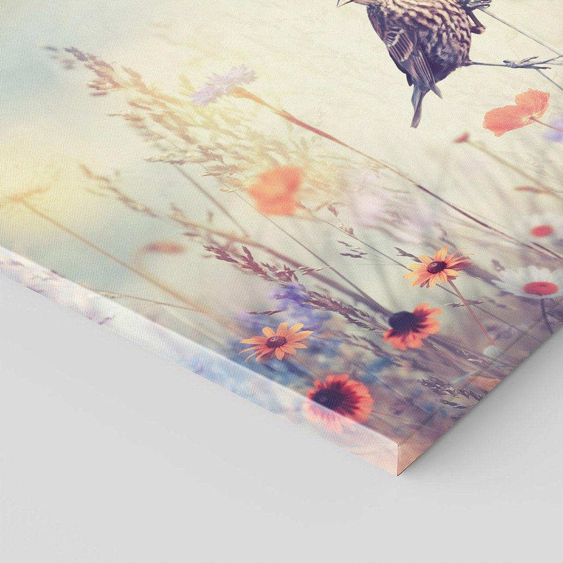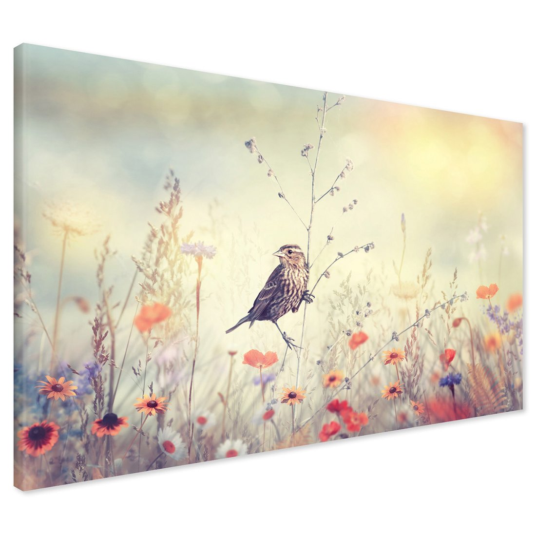 • Obraz na płótnie - ptak, kwiaty, łąka