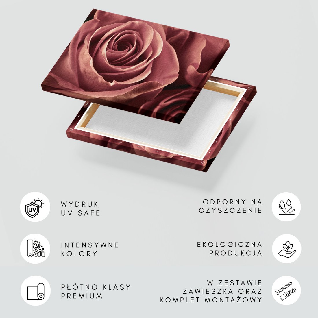 Obraz na płótnie z motywem róża, kwiat, płatki to kwintesencja estetyki i trwałości. Dzięki łatwemu montażowi i uniwersalnemu wzornictwu, czyni go idealnym wyborem zarówno do codziennego użytku, jak i na wyrafinowany prezent.