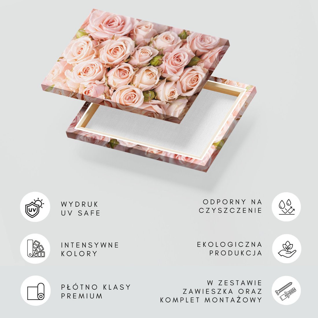 Obraz na płótnie z motywem róże, kwiaty, bukiet to kwintesencja estetyki i trwałości. Dzięki łatwemu montażowi i uniwersalnemu wzornictwu, czyni go idealnym wyborem zarówno do codziennego użytku, jak i na wyrafinowany prezent.