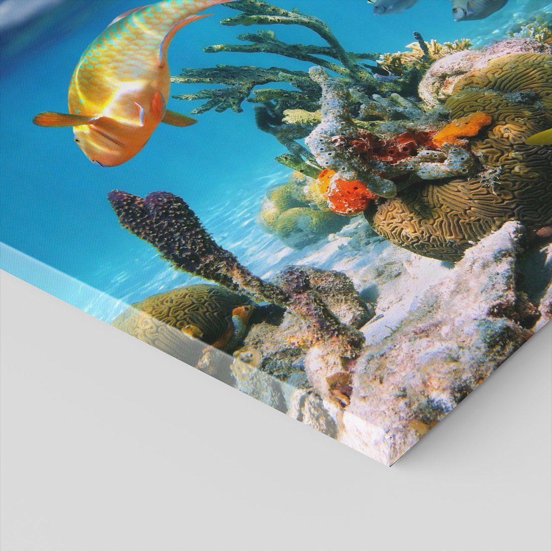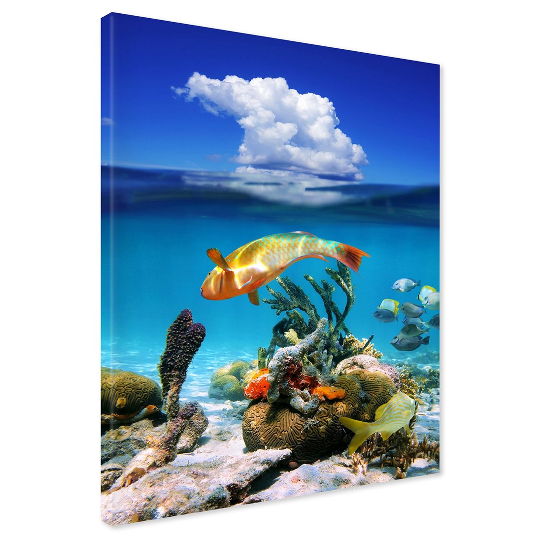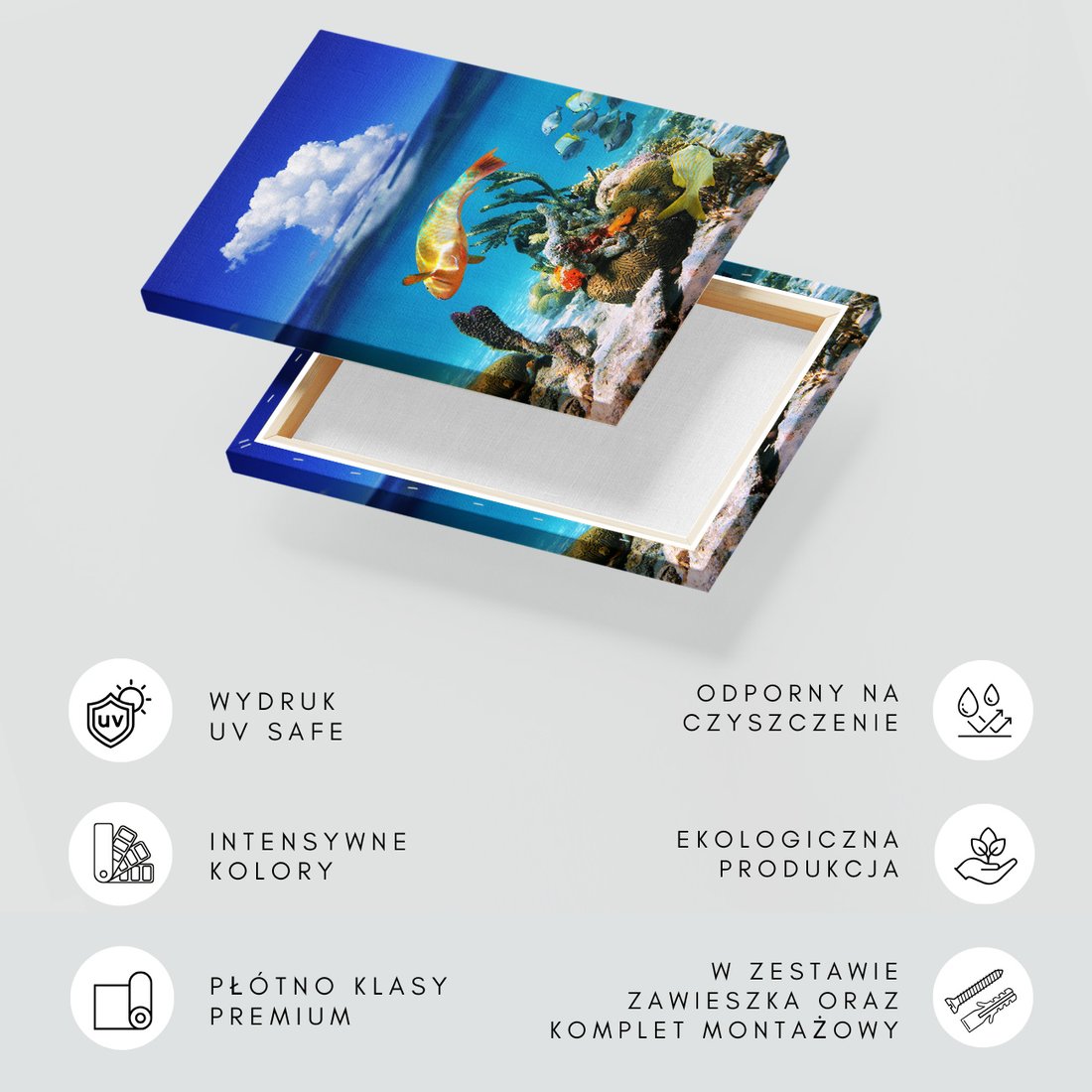 Obraz na płótnie z motywem ryba, rafa, morze to kwintesencja estetyki i trwałości. Dzięki łatwemu montażowi i uniwersalnemu wzornictwu, czyni go idealnym wyborem zarówno do codziennego użytku, jak i na wyrafinowany prezent.