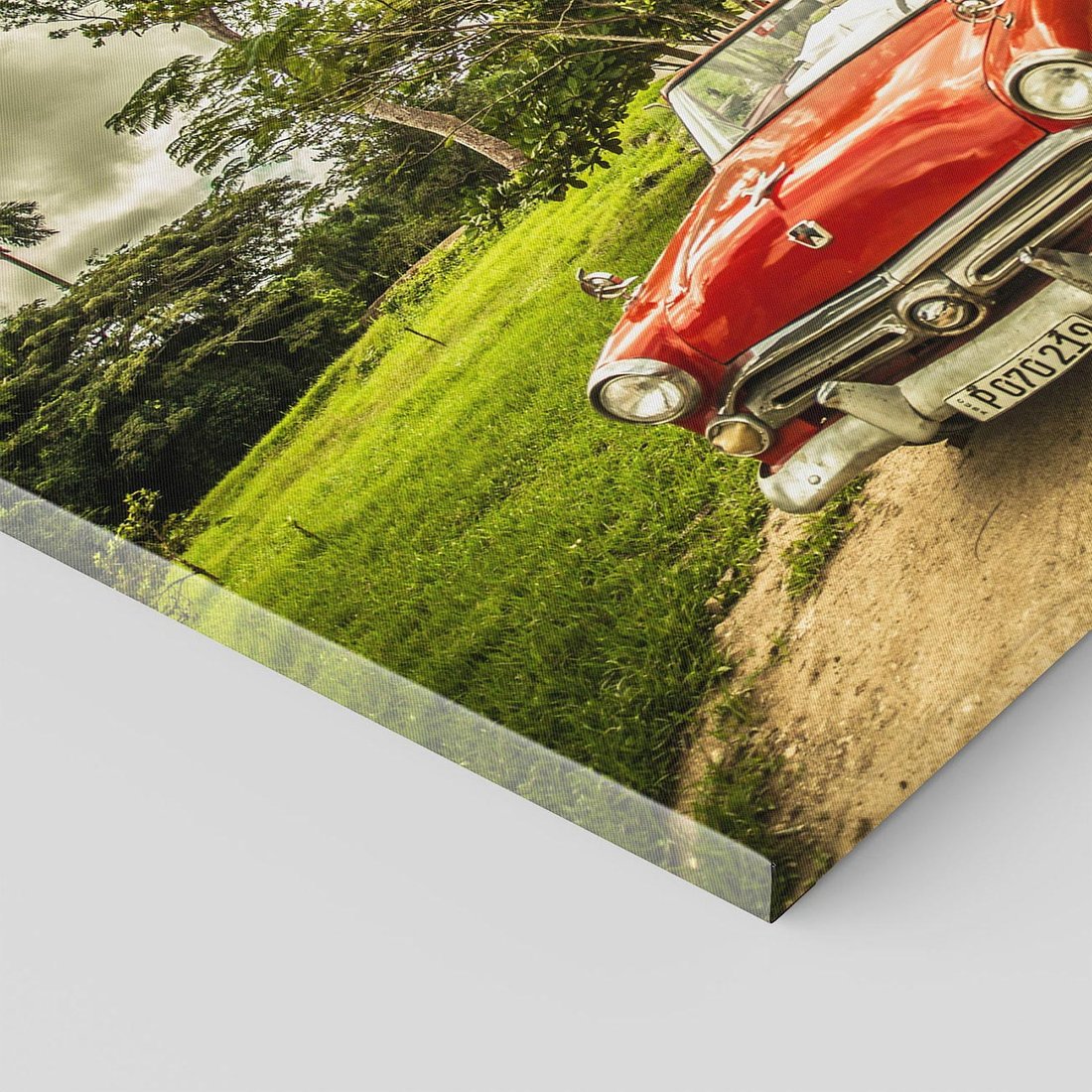 Obraz na płótnie z motywem samochód, vintage, natura to kwintesencja estetyki i trwałości. Dzięki łatwemu montażowi i uniwersalnemu wzornictwu, czyni go idealnym wyborem zarówno do codziennego użytku, jak i na wyrafinowany prezent.