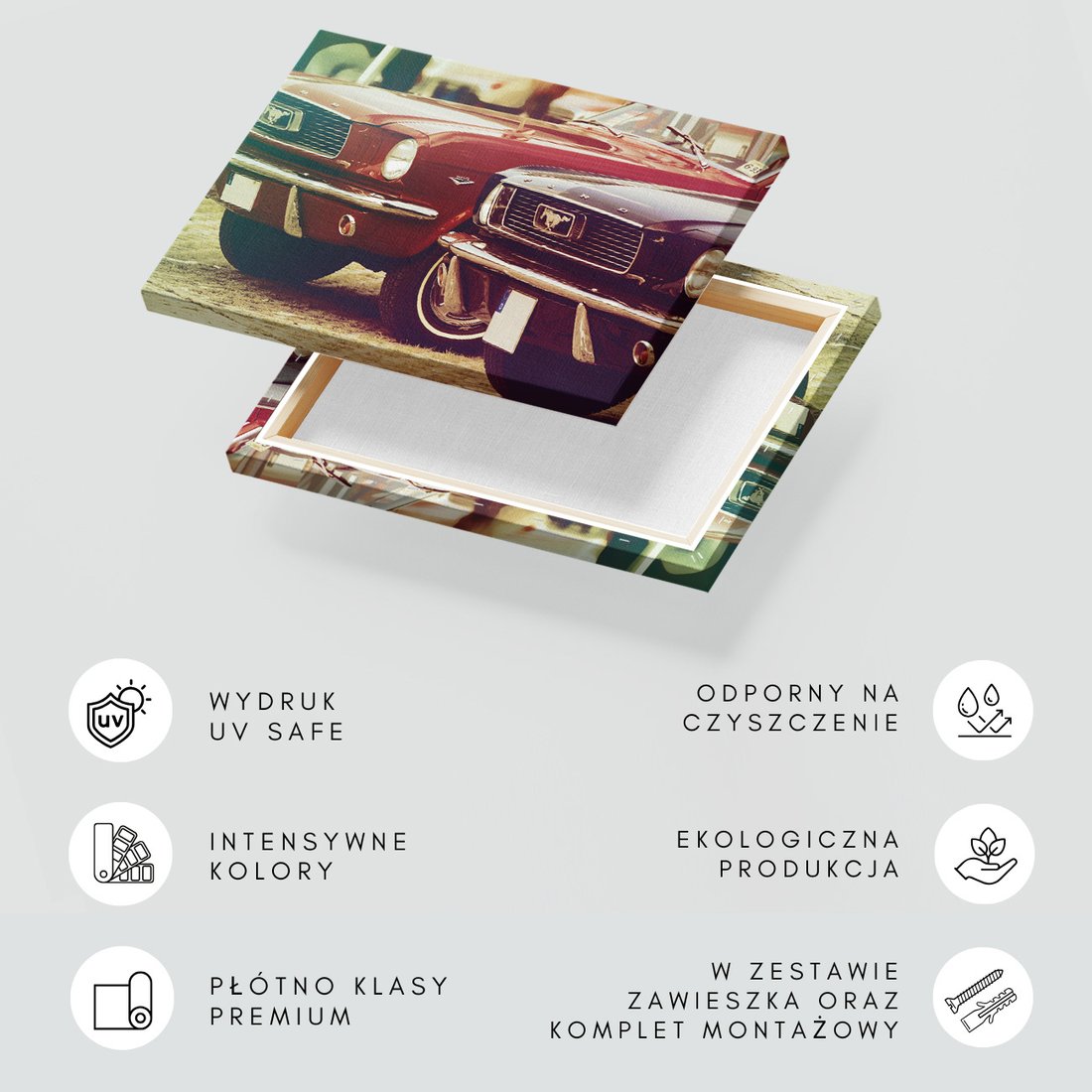 Obraz na płótnie z motywem samochody, klasyki, mustang to kwintesencja estetyki i trwałości. Dzięki łatwemu montażowi i uniwersalnemu wzornictwu, czyni go idealnym wyborem zarówno do codziennego użytku, jak i na wyrafinowany prezent.