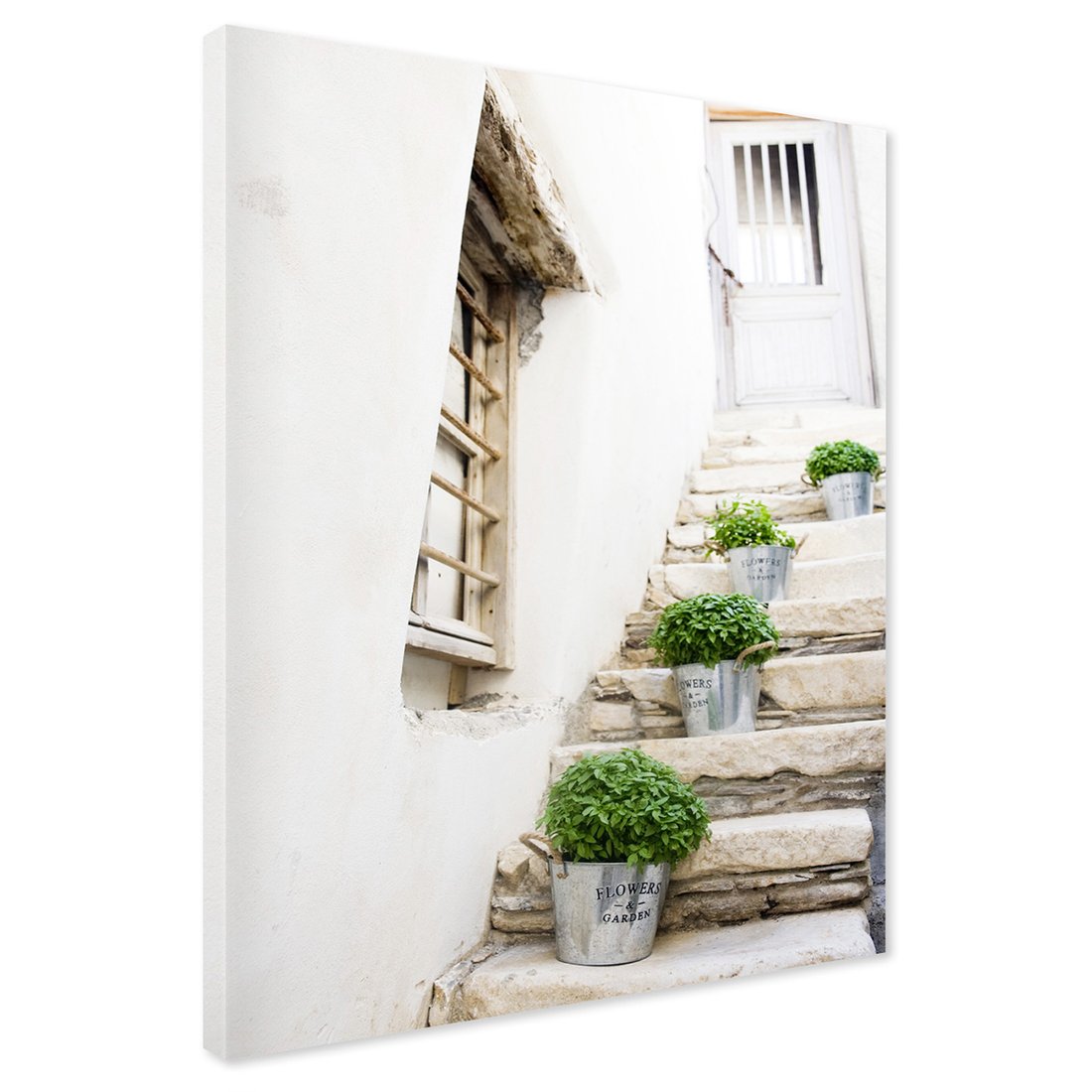 - Obraz na płótnie - schody, kwiaty, doniczki