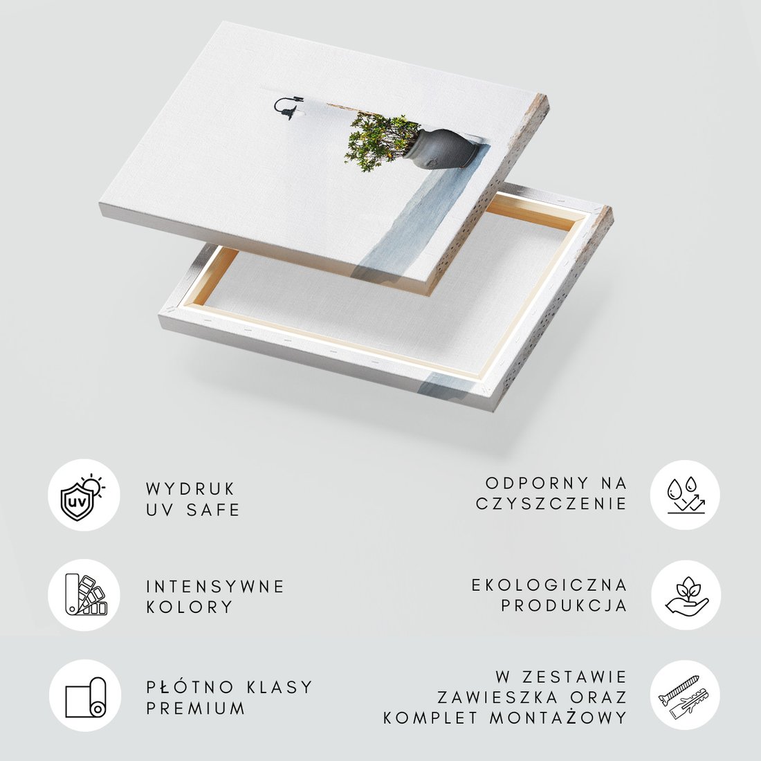 Obraz na płótnie z motywem ściana, roślina, donica to kwintesencja estetyki i trwałości. Dzięki łatwemu montażowi i uniwersalnemu wzornictwu, czyni go idealnym wyborem zarówno do codziennego użytku, jak i na wyrafinowany prezent.