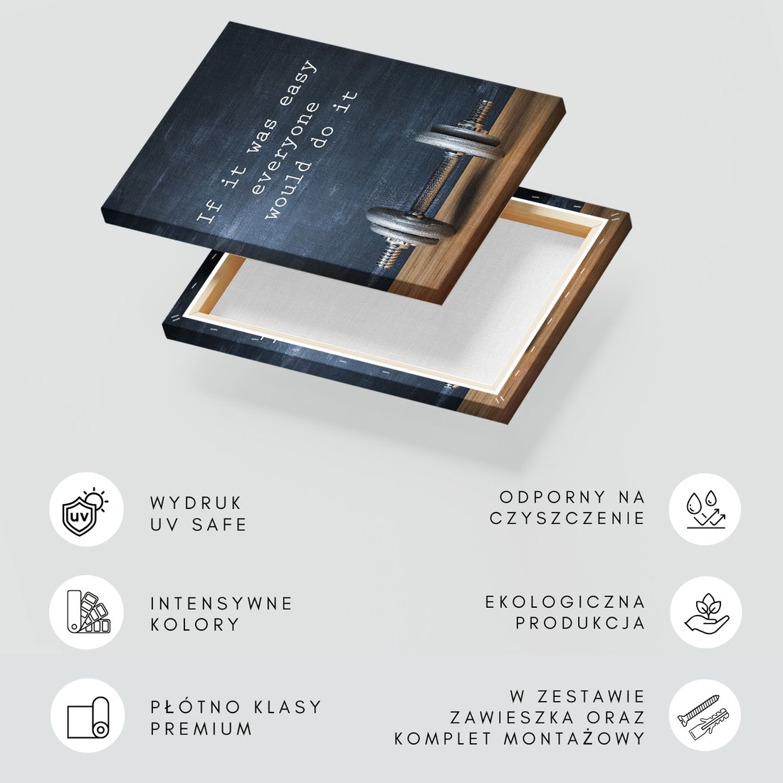 Obraz na płótnie z motywem siłownia, ćwiczenia, ciężary to kwintesencja estetyki i trwałości. Dzięki łatwemu montażowi i uniwersalnemu wzornictwu, czyni go idealnym wyborem zarówno do codziennego użytku, jak i na wyrafinowany prezent.