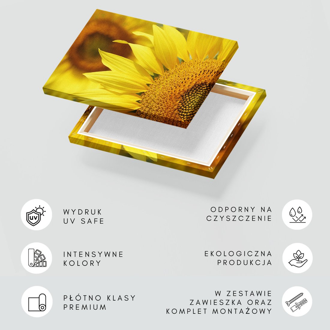 Obraz na płótnie z motywem słonecznik, kwiat, żółty to kwintesencja estetyki i trwałości. Dzięki łatwemu montażowi i uniwersalnemu wzornictwu, czyni go idealnym wyborem zarówno do codziennego użytku, jak i na wyrafinowany prezent.