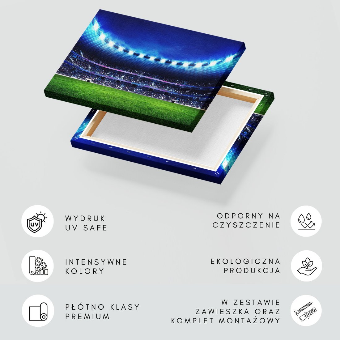 Obraz na płótnie z motywem stadion, trawa, kibice to kwintesencja estetyki i trwałości. Dzięki łatwemu montażowi i uniwersalnemu wzornictwu, czyni go idealnym wyborem zarówno do codziennego użytku, jak i na wyrafinowany prezent.