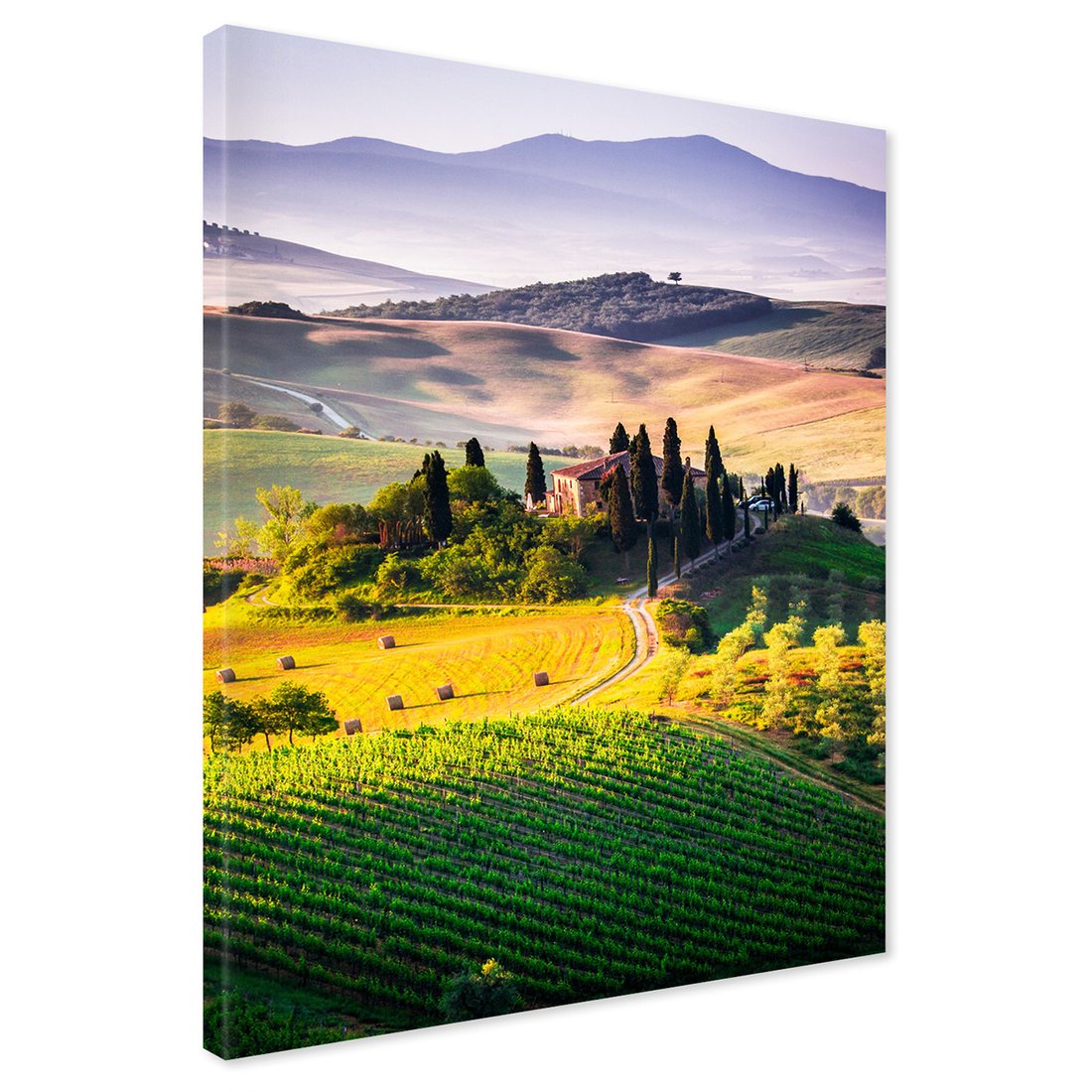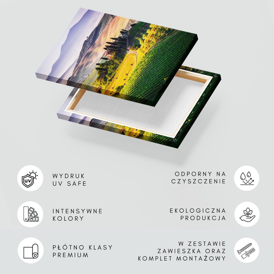 Obraz na płótnie z motywem Toskania, krajobraz, wzgórza to kwintesencja estetyki i trwałości. Dzięki łatwemu montażowi i uniwersalnemu wzornictwu, czyni go idealnym wyborem zarówno do codziennego użytku, jak i na wyrafinowany prezent.