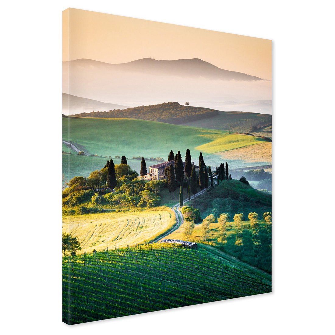 Obraz na płótnie z motywem Toskania, krajobraz, wzgórze to kwintesencja estetyki i trwałości. Dzięki łatwemu montażowi i uniwersalnemu wzornictwu, czyni go idealnym wyborem zarówno do codziennego użytku, jak i na wyrafinowany prezent.