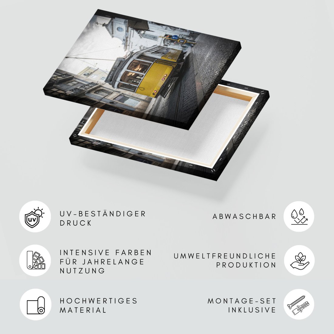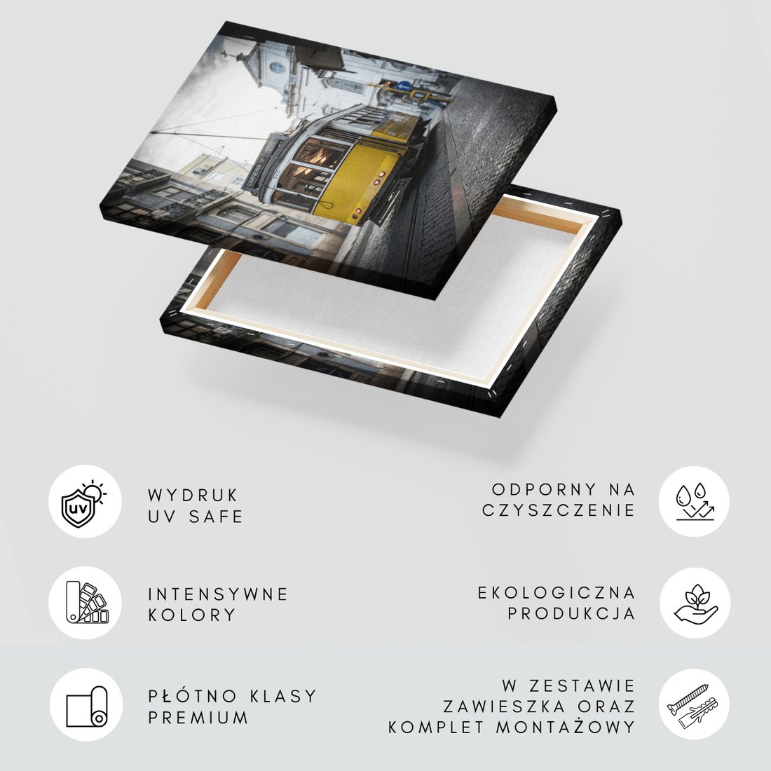 Obraz na płótnie z motywem tramwaj, miasto, ulica to kwintesencja estetyki i trwałości. Dzięki łatwemu montażowi i uniwersalnemu wzornictwu, czyni go idealnym wyborem zarówno do codziennego użytku, jak i na wyrafinowany prezent.