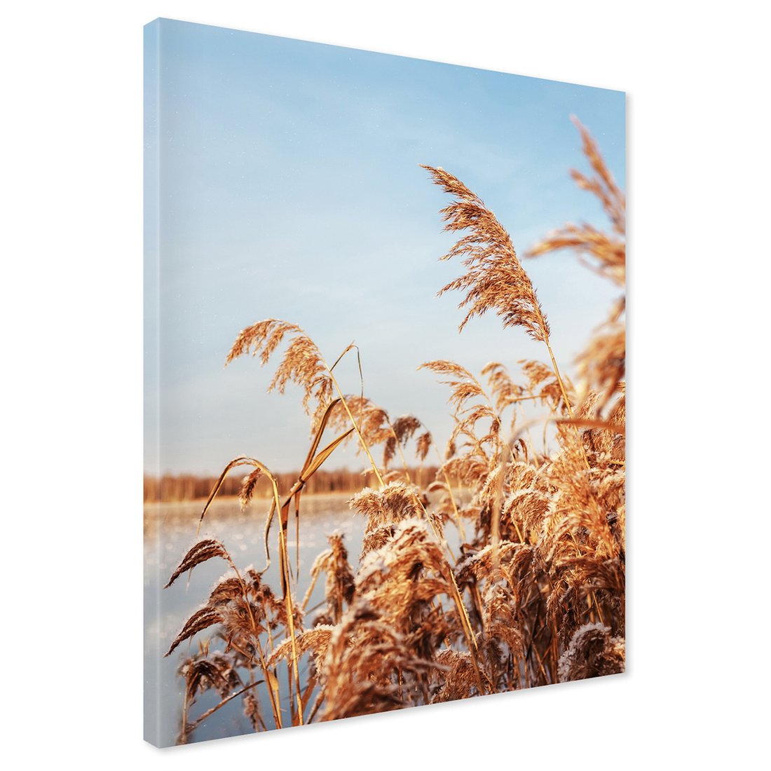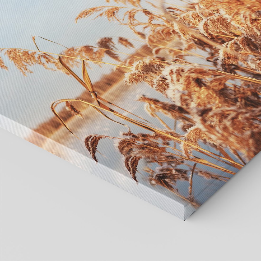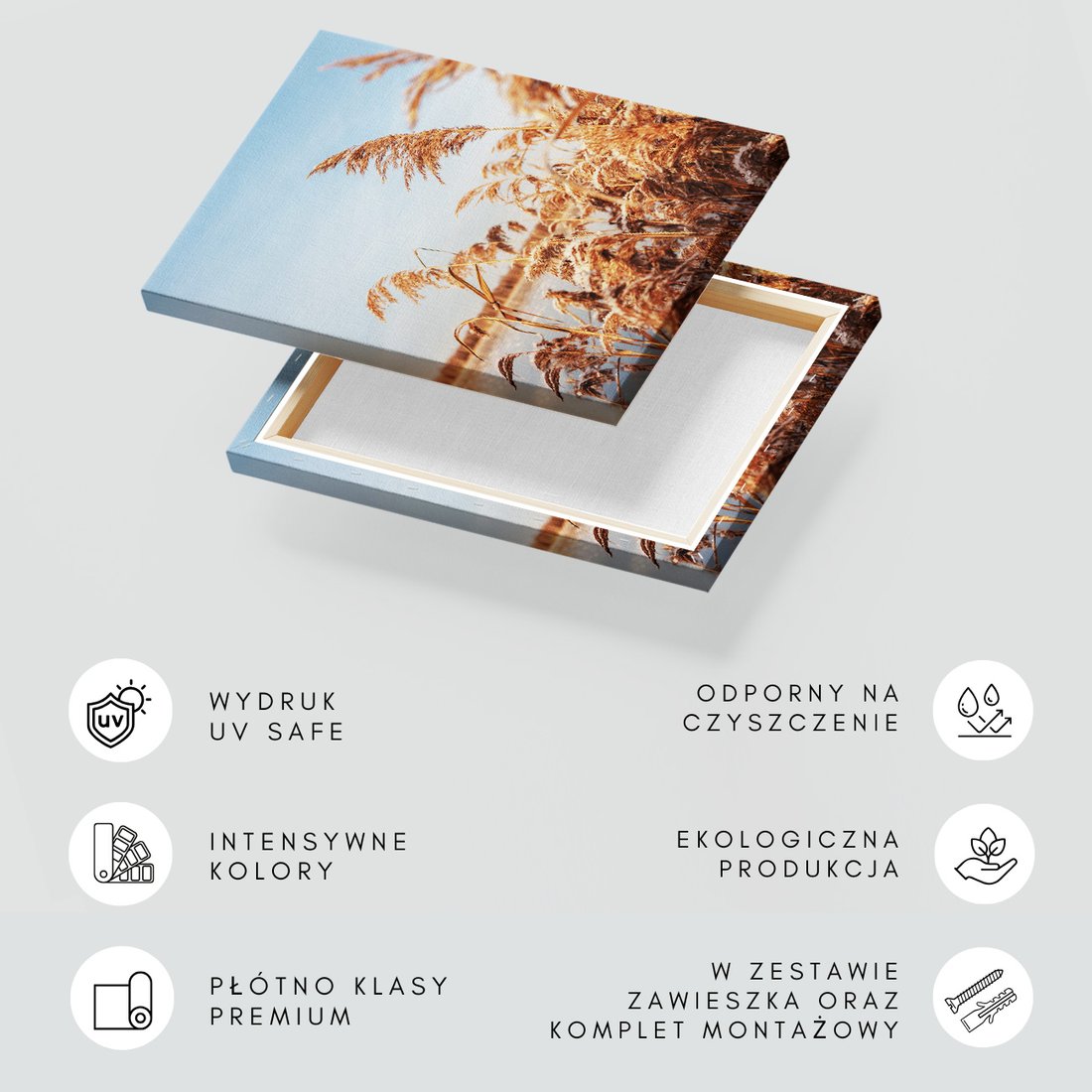 Obraz na płótnie z motywem trzcinowisko, zima, śnieg to kwintesencja estetyki i trwałości. Dzięki łatwemu montażowi i uniwersalnemu wzornictwu, czyni go idealnym wyborem zarówno do codziennego użytku, jak i na wyrafinowany prezent.