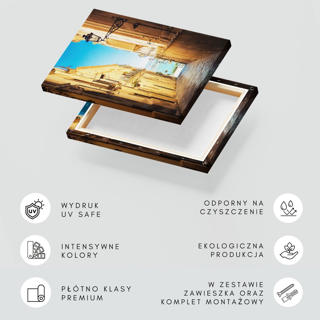 Obraz na płótnie z motywem ulica, miasto, morze to kwintesencja estetyki i trwałości. Dzięki łatwemu montażowi i uniwersalnemu wzornictwu, czyni go idealnym wyborem zarówno do codziennego użytku, jak i na wyrafinowany prezent.