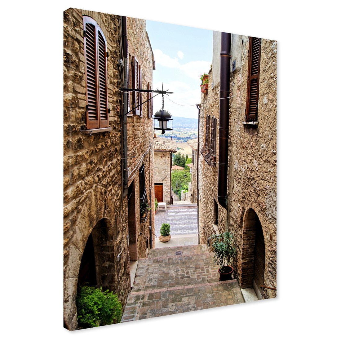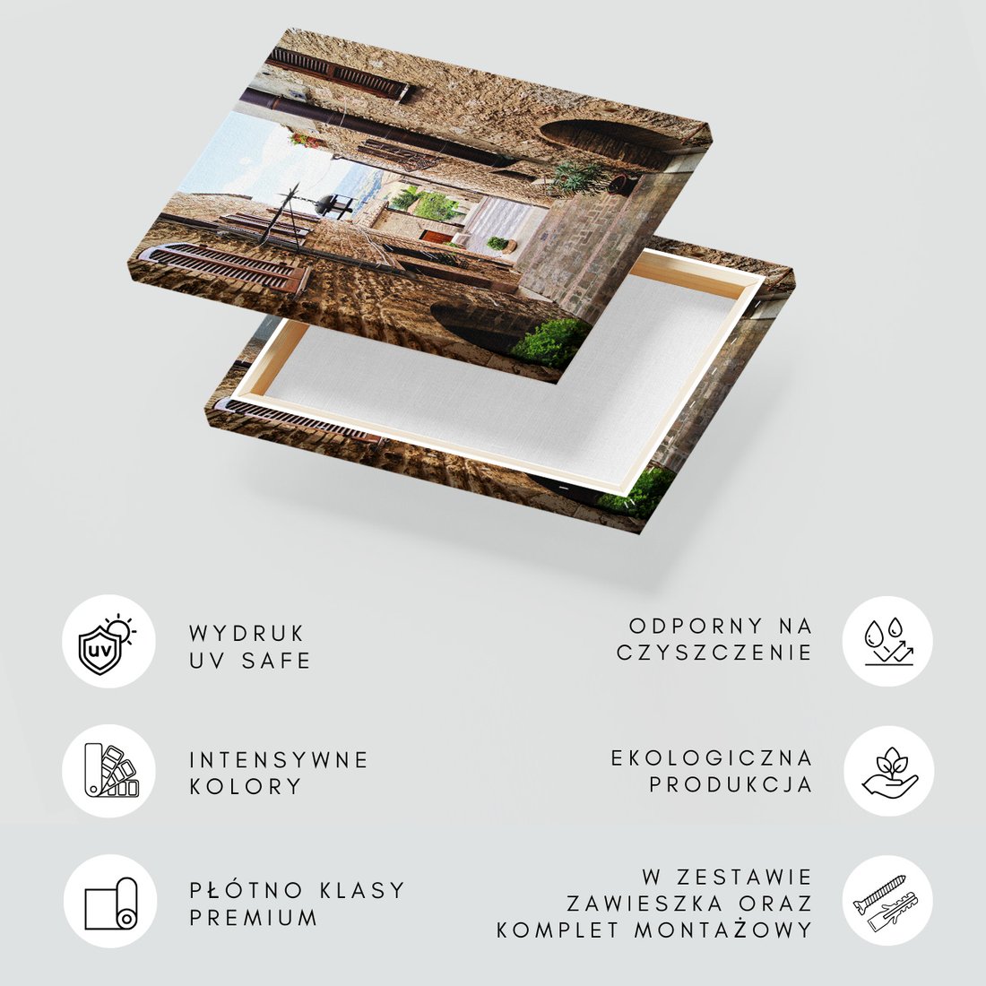 Obraz na płótnie z motywem ulica, schody, miasto to kwintesencja estetyki i trwałości. Dzięki łatwemu montażowi i uniwersalnemu wzornictwu, czyni go idealnym wyborem zarówno do codziennego użytku, jak i na wyrafinowany prezent.