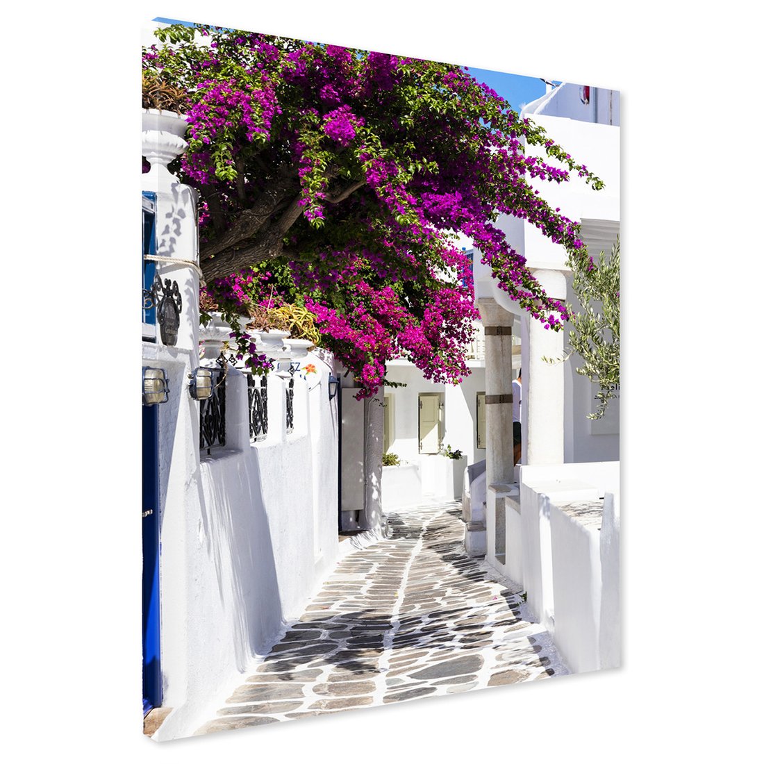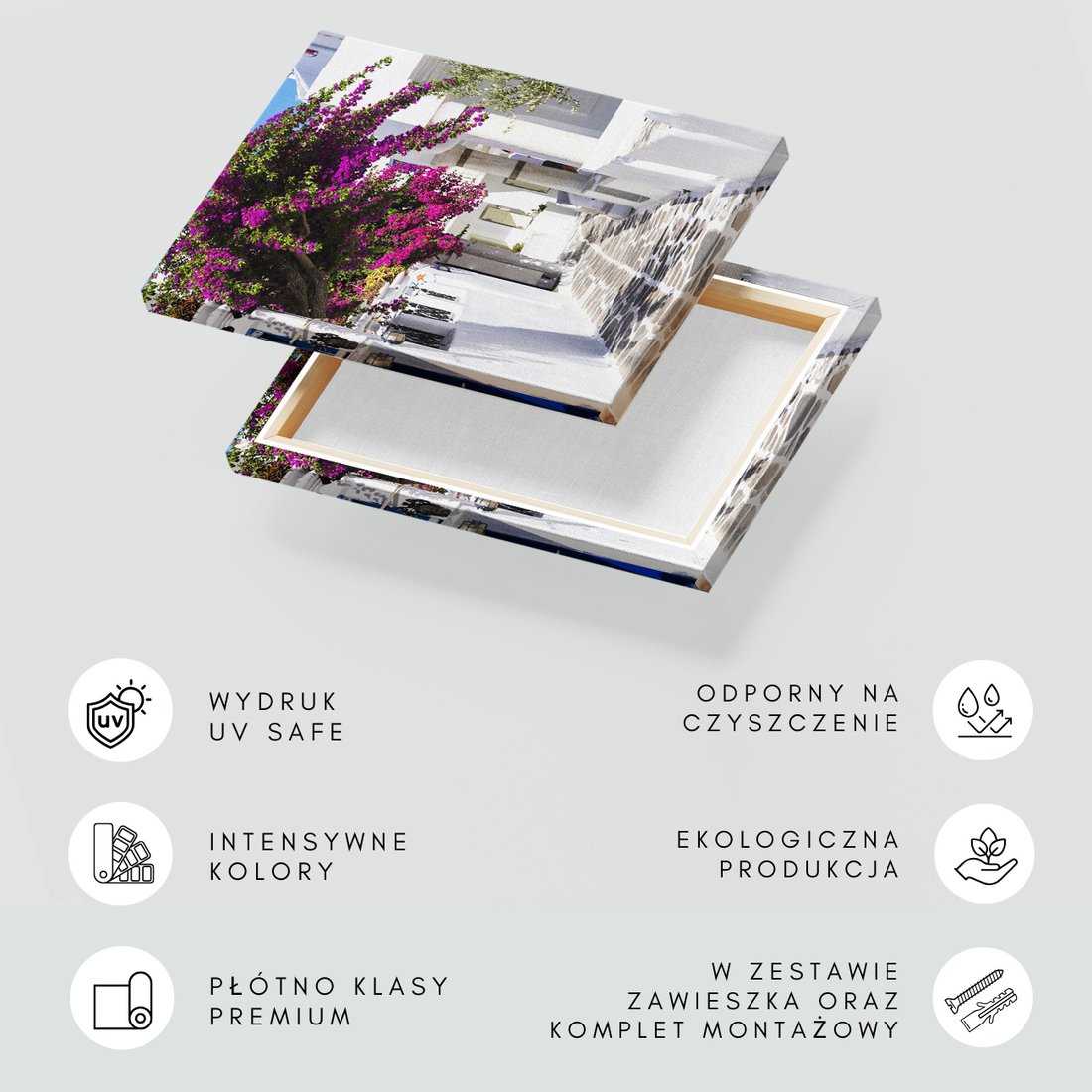 Obraz na płótnie z motywem uliczka, kwiaty, biały to kwintesencja estetyki i trwałości. Dzięki łatwemu montażowi i uniwersalnemu wzornictwu, czyni go idealnym wyborem zarówno do codziennego użytku, jak i na wyrafinowany prezent.