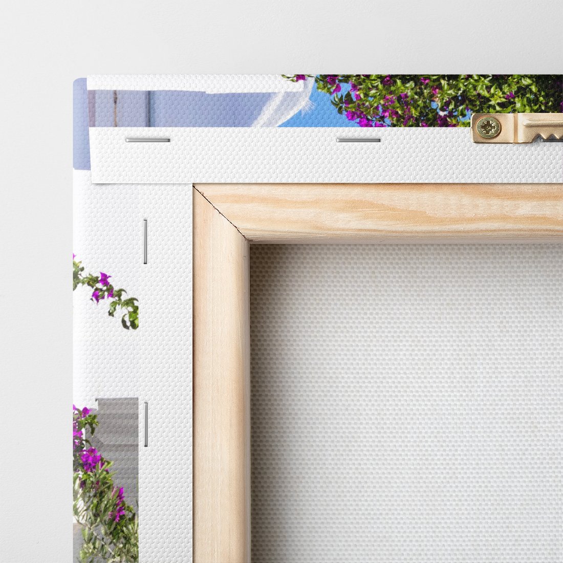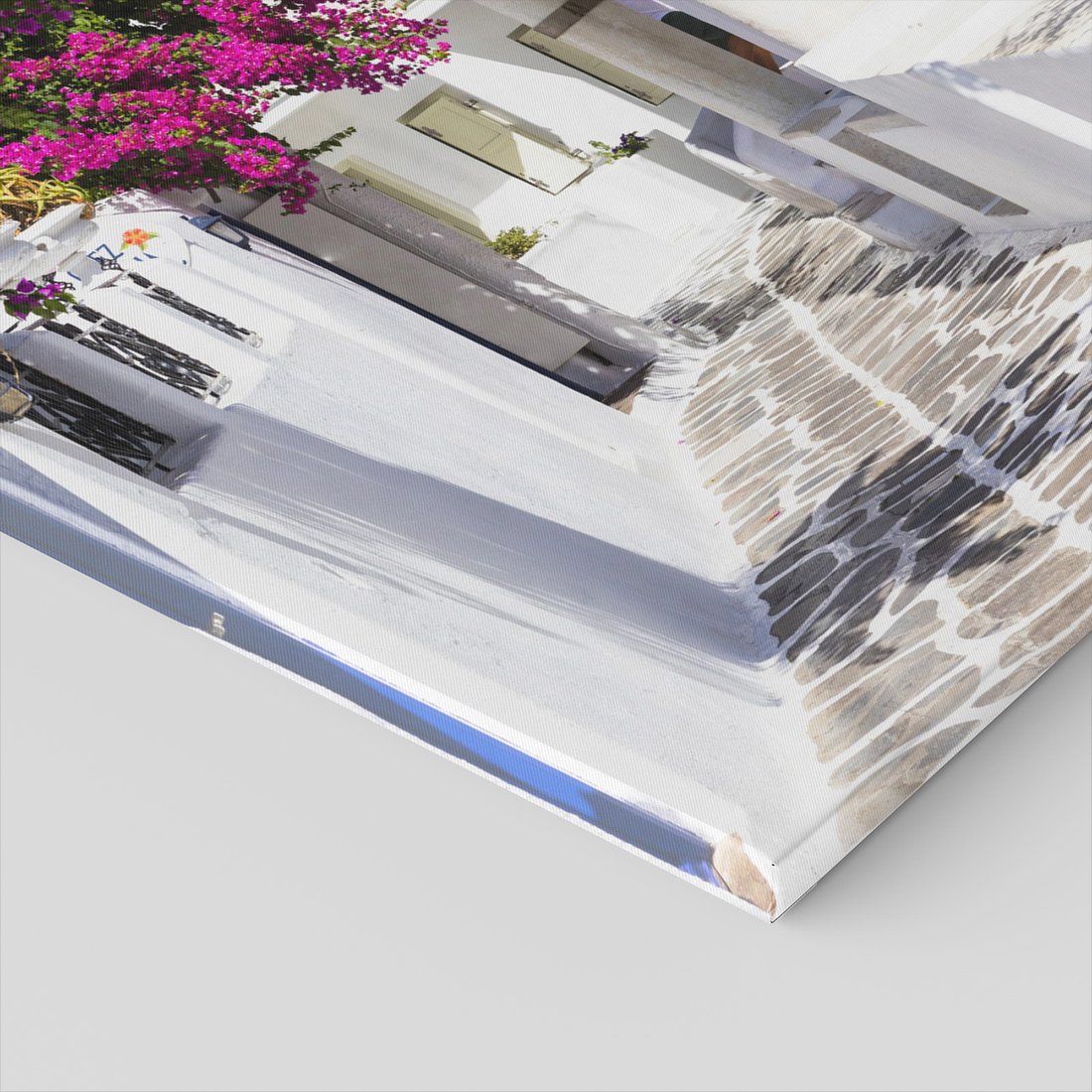 Obraz na płótnie - uliczka, kwiaty, biały