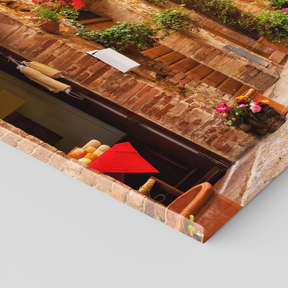 Obraz na płótnie z motywem uliczka, kwiaty, budynki to kwintesencja estetyki i trwałości. Dzięki łatwemu montażowi i uniwersalnemu wzornictwu, czyni go idealnym wyborem zarówno do codziennego użytku, jak i na wyrafinowany prezent.