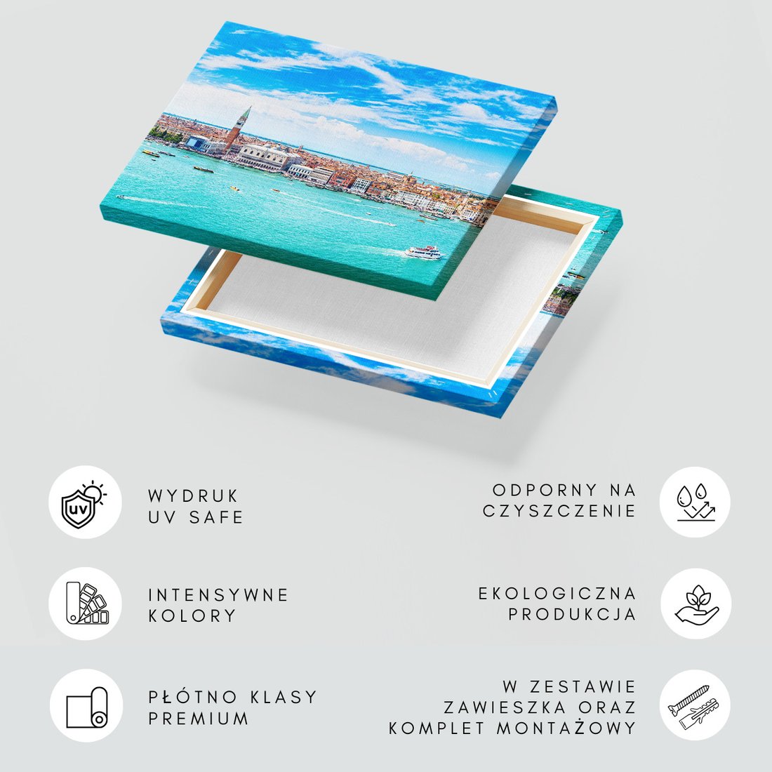 Obraz na płótnie z motywem Wenecja, miasto, woda to kwintesencja estetyki i trwałości. Dzięki łatwemu montażowi i uniwersalnemu wzornictwu, czyni go idealnym wyborem zarówno do codziennego użytku, jak i na wyrafinowany prezent.