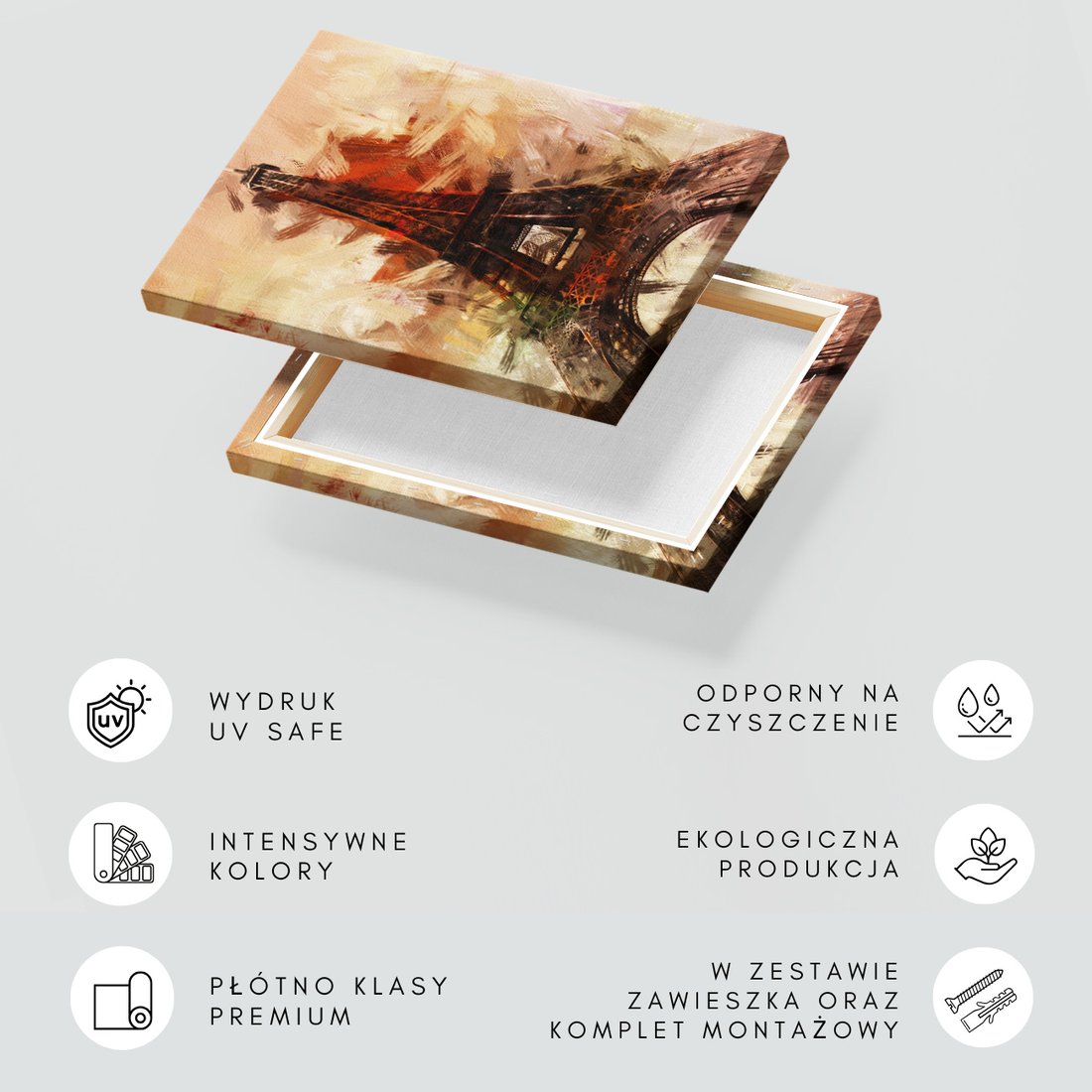 Obraz na płótnie z motywem wieża Eiffla, Paryż, abstrakcja to kwintesencja estetyki i trwałości. Dzięki łatwemu montażowi i uniwersalnemu wzornictwu, czyni go idealnym wyborem zarówno do codziennego użytku, jak i na wyrafinowany prezent.