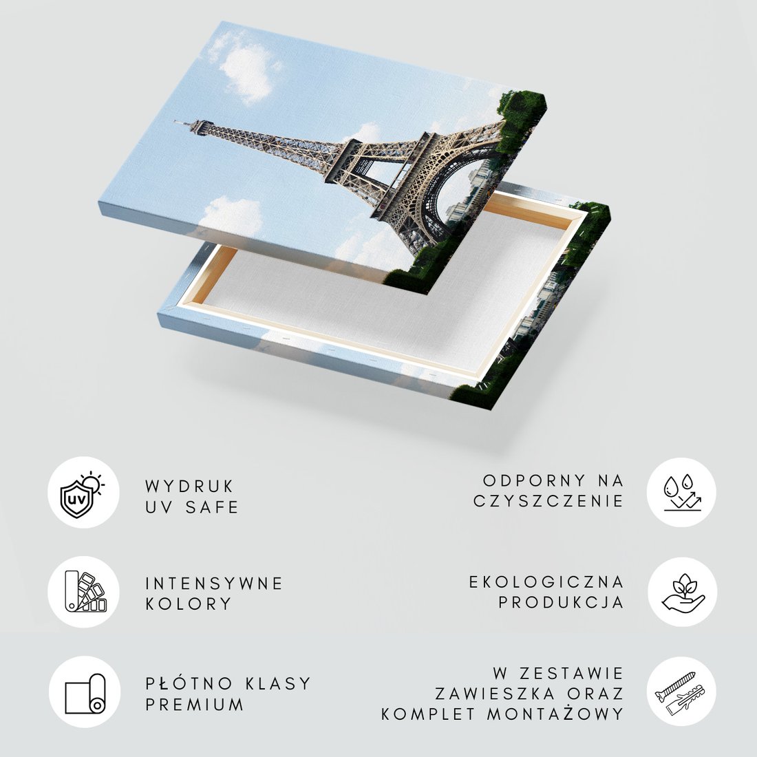 Obraz na płótnie z motywem Wieża Eiffla, Paryż, Francja to kwintesencja estetyki i trwałości. Dzięki łatwemu montażowi i uniwersalnemu wzornictwu, czyni go idealnym wyborem zarówno do codziennego użytku, jak i na wyrafinowany prezent.
