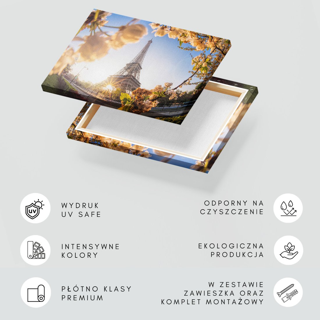 Obraz na płótnie z motywem Wieża Eiffla, Paryż, kwiaty to kwintesencja estetyki i trwałości. Dzięki łatwemu montażowi i uniwersalnemu wzornictwu, czyni go idealnym wyborem zarówno do codziennego użytku, jak i na wyrafinowany prezent.