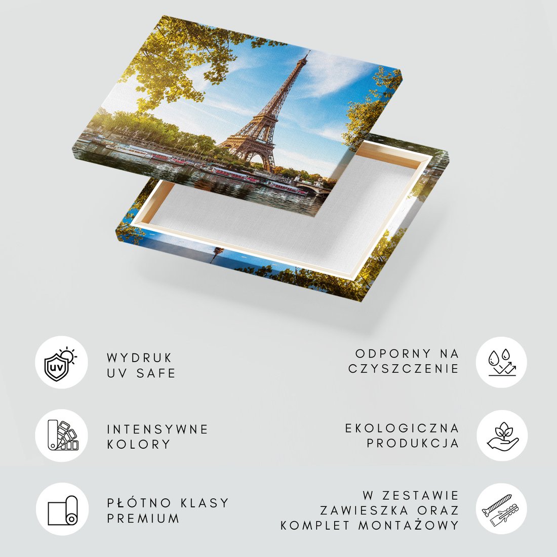 Obraz na płótnie z motywem Wieża Eiffla, Paryż, rzeka to kwintesencja estetyki i trwałości. Dzięki łatwemu montażowi i uniwersalnemu wzornictwu, czyni go idealnym wyborem zarówno do codziennego użytku, jak i na wyrafinowany prezent.