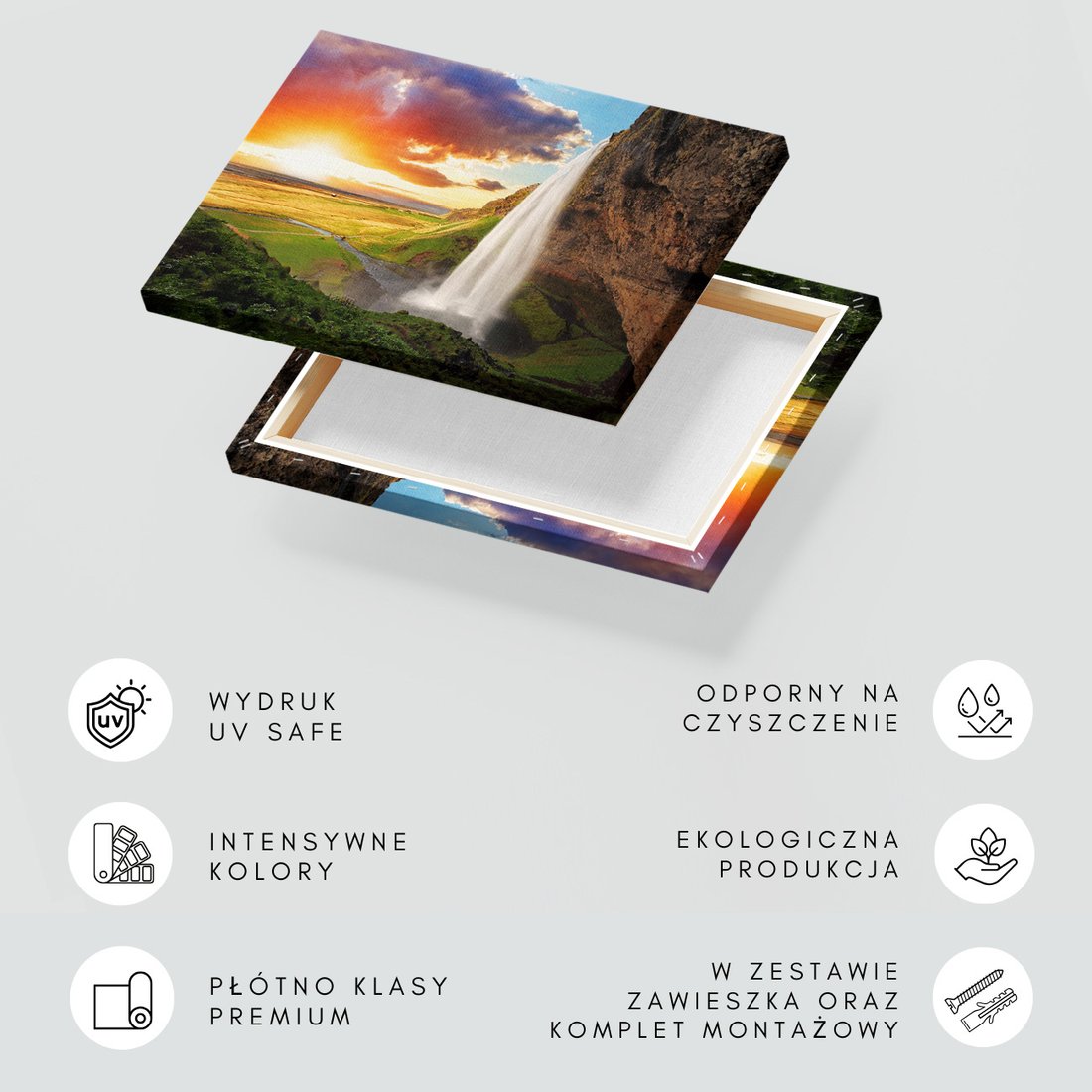 Obraz na płótnie z motywem wodospad, krajobraz, natura to kwintesencja estetyki i trwałości. Dzięki łatwemu montażowi i uniwersalnemu wzornictwu, czyni go idealnym wyborem zarówno do codziennego użytku, jak i na wyrafinowany prezent.