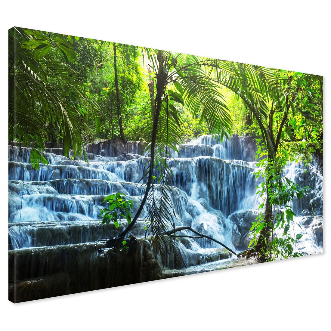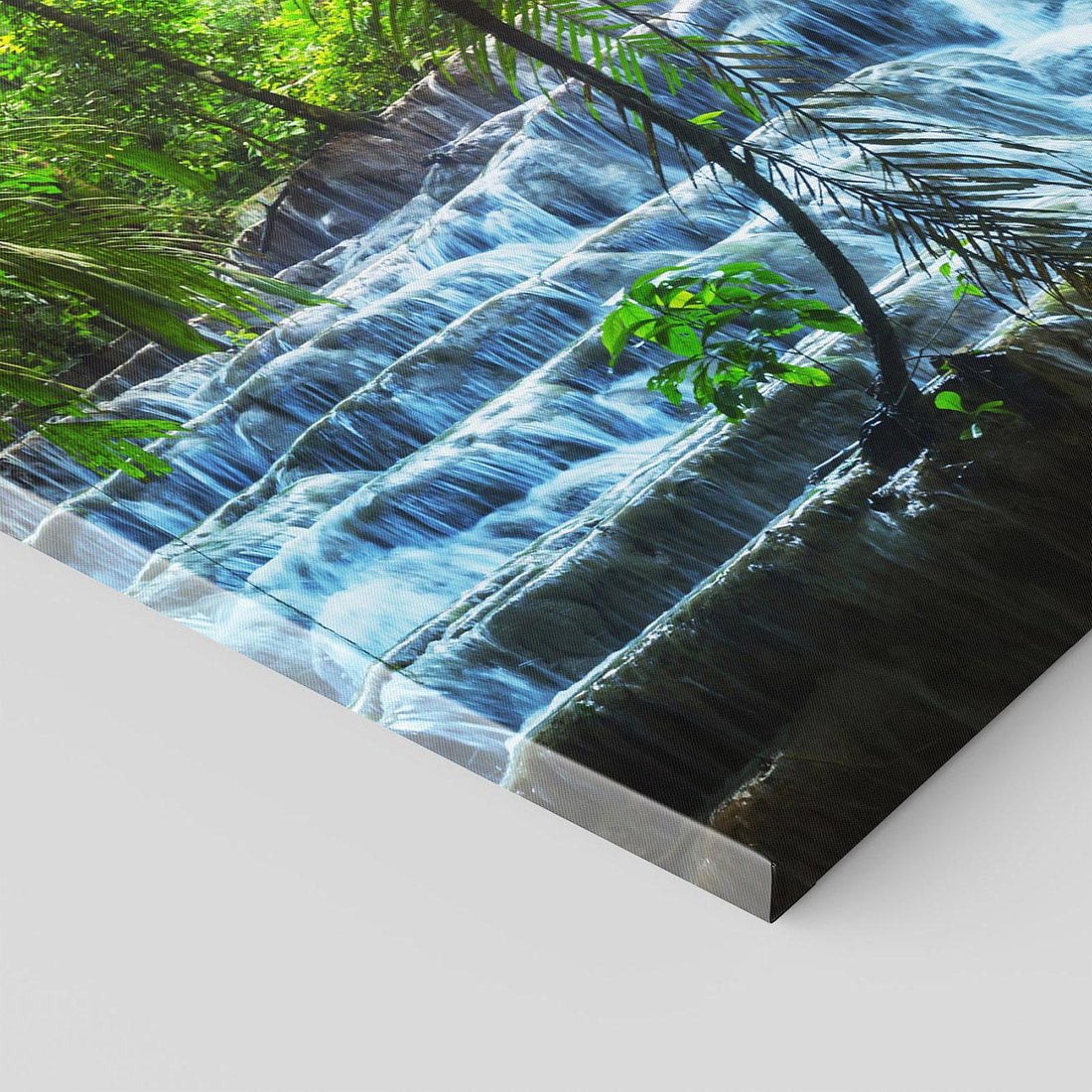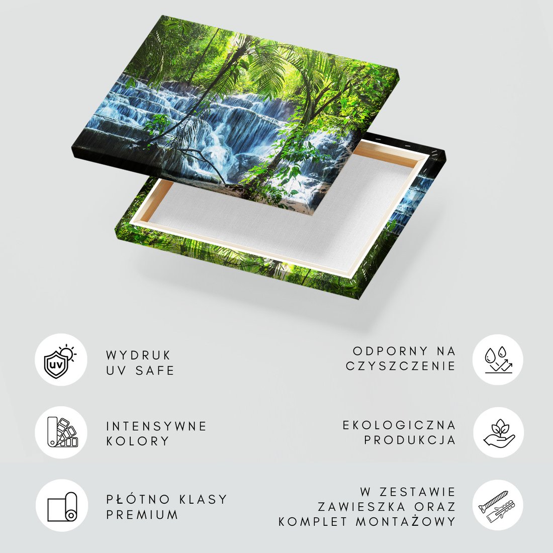 Obraz na płótnie z motywem wodospad, las, tropikalny to kwintesencja estetyki i trwałości. Dzięki łatwemu montażowi i uniwersalnemu wzornictwu, czyni go idealnym wyborem zarówno do codziennego użytku, jak i na wyrafinowany prezent.