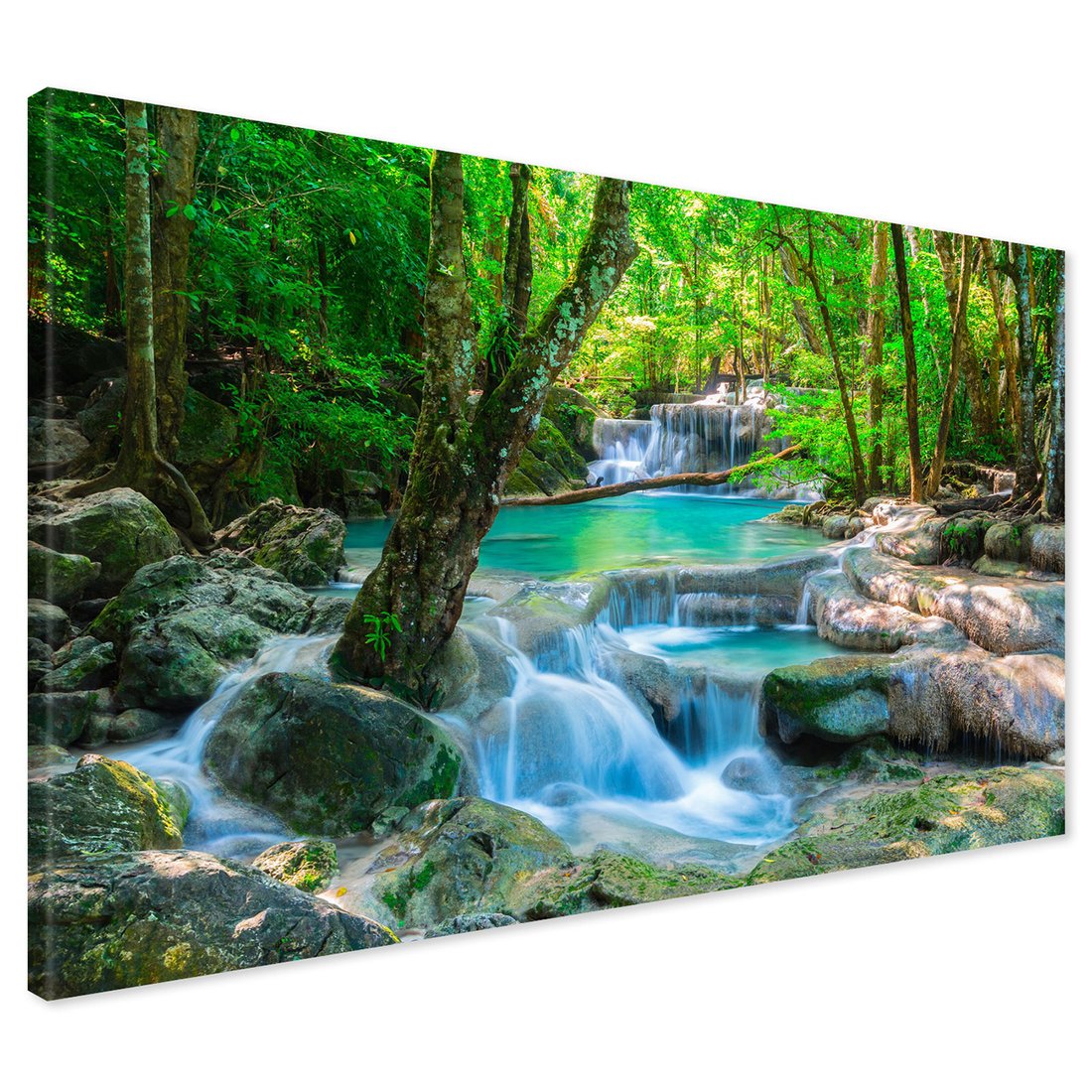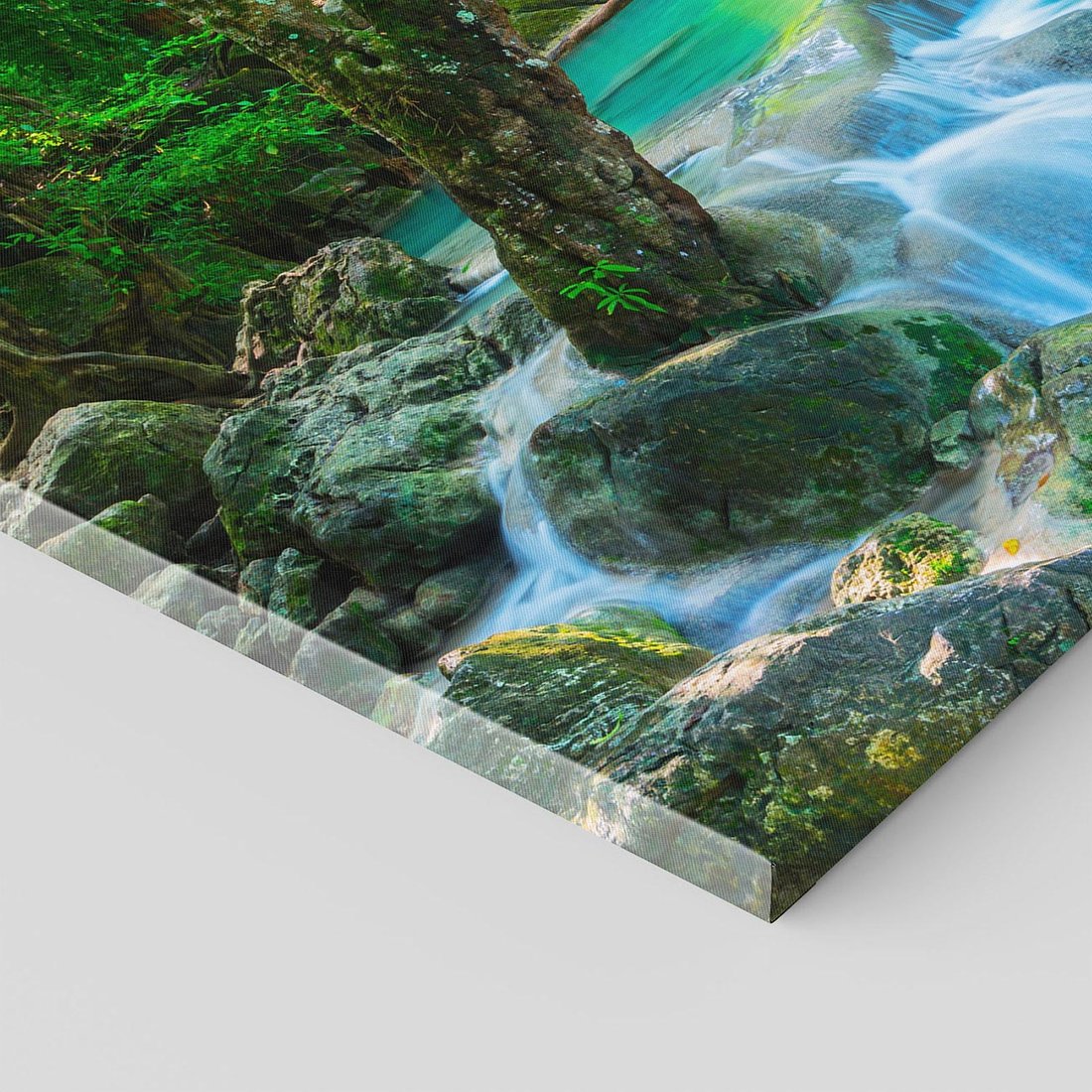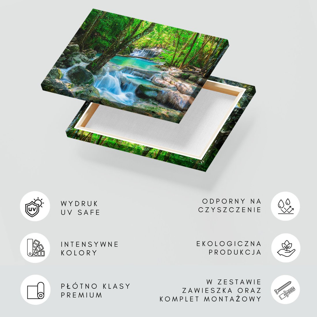 Obraz na płótnie z motywem wodospad, las, woda to kwintesencja estetyki i trwałości. Dzięki łatwemu montażowi i uniwersalnemu wzornictwu, czyni go idealnym wyborem zarówno do codziennego użytku, jak i na wyrafinowany prezent.